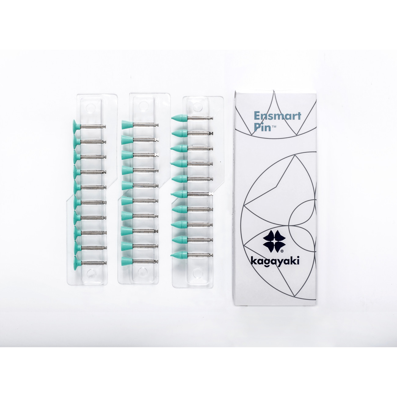 Набор полиров Kagayaki Ensmart pin — одноразовые силиконовые полиры на стальном пине трёх различных форм (диск, пуля, чашка), предназначенные для выравнивания шероховатостей и придания блеска и гладкости поверхностям композитных, компомерных и стеклоиономерных реставраций. Наполненные оксидом алюминия в качестве абразивного вещества на силиконовом связующем, они отлично сглаживают поверхность.