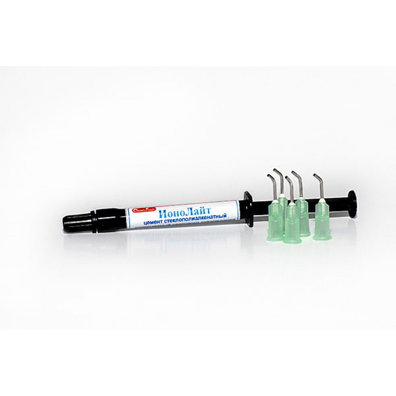 ИОНОЛАЙТ стеклополиалкенатный композитный цемент светового отверждения текучей консистенции (прокладки, выравнивание дна полости, запечатывание фиссур, пломбирование по V классу). 3 шприца по 2 г цвета В2.
