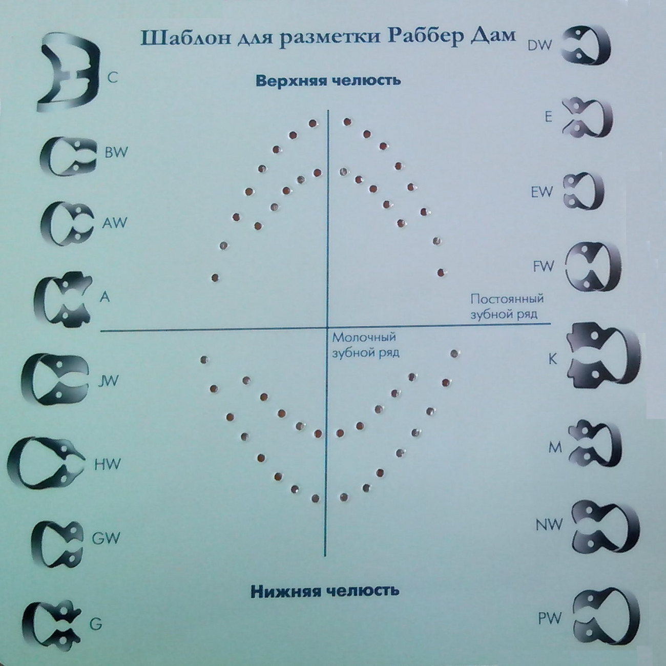 Назначение: шаблон предназначен для создания равномерного и плотного прилегания коффердама к зубу, что позволяет предотвратить попадание влаги и микроорганизмов в рабочую зону и обеспечить максимальную стерильность.