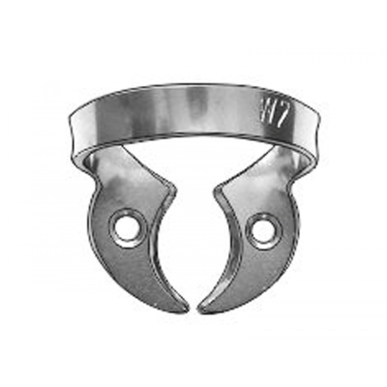 Клампы с плоскими горизонтальными «челюстями», с крыльями (№ 7) и без крыльев (№ W7), для нижних и верхних моляров с большим размером коронки и выраженным экватором.
