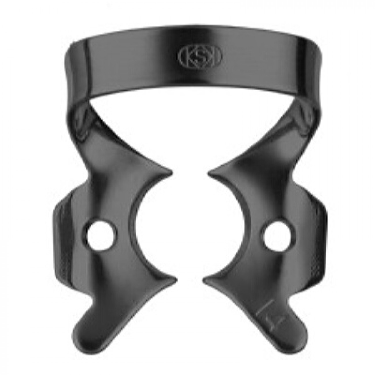 Кламп для коффердама KSK Dentech №14-В- Кламп для частично прорезавшихся моляров верхней и нижней челюсти, а также зубов, имеющих значительное разрушение коронковой части или полностью разрушенную мезиальную стенку. Как и кламп №3, имеет щечки небольшого размера, но они изогнуты по плоскости в виде воронки. Часто применяется для работы с кариозными поражениями твердых тканей зуба любой локализации и на коронках зубов с невыраженным экватором.