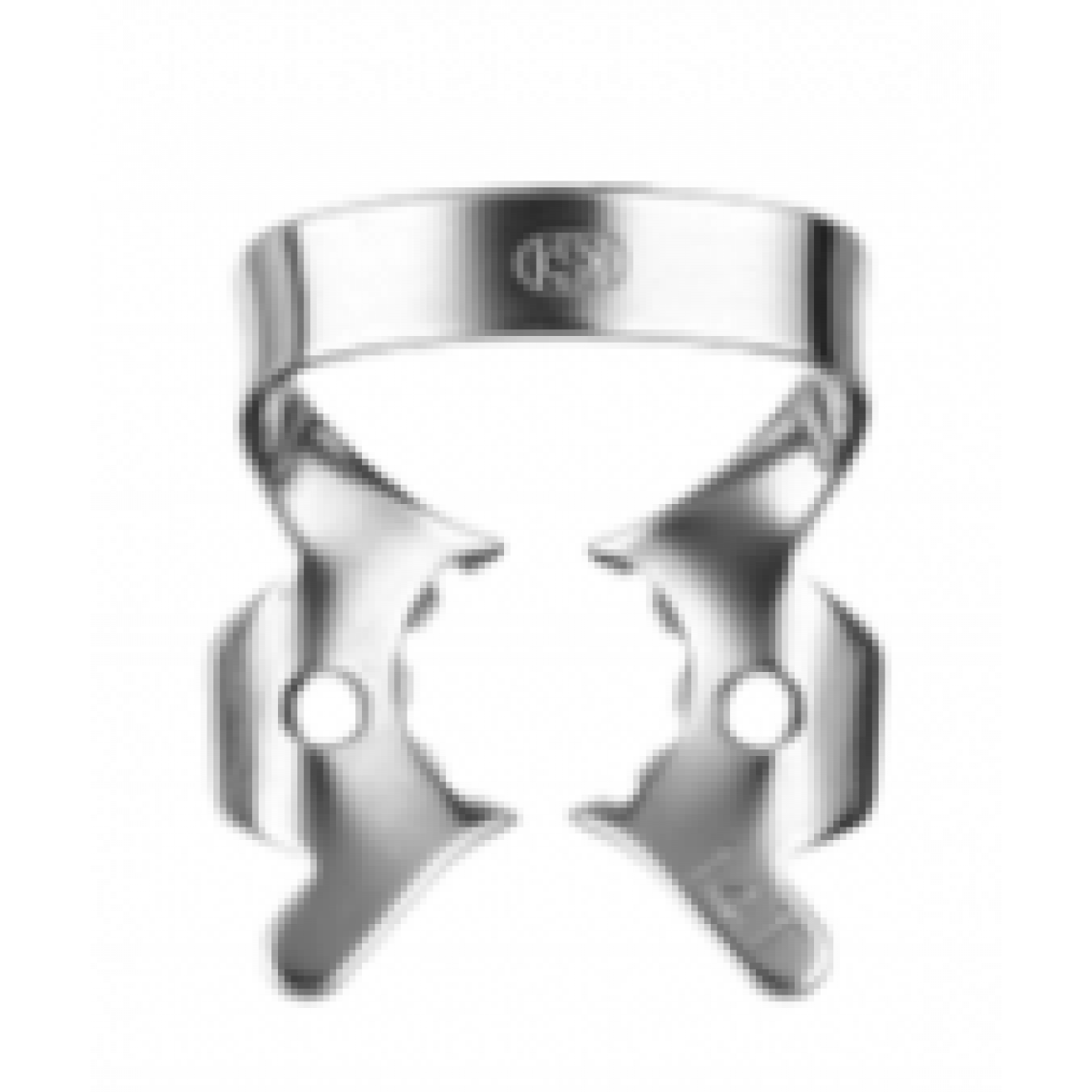 Кламп "тигровый" (с ретенционными зубцами) для коффердама KSK Dentech №14T-В - Кламп для моляров верхней и нижней челюсти, имеющих значительное разрушение коронковой части или с полностью разрушенной медиальной стенкой. Имеет щечки небольшого размера как у клампа №3, но в отличие от него, щечки изогнуты по плоскости в виде воронки. По всей длине щечек клампа имеются ретенционные зубцы для его лучшей фиксации на зубах с атипичной формой коронковой части или при ее сильном разрушении. Часто применяется для работы с кариозными поражениями твёрдых тканей зуба любой локализации и на коронках зубов с невыраженным экватором.