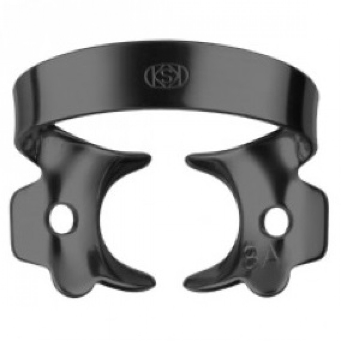 Кламп для коффердама KSK Dentech №8А-В- Кламп для моляров верхней и нижней челюсти с очень разрушенной, практически отсутствующей, коронковой частью. Удлиненные боковые щечки и выступающие углы позволяют надежно фиксировать его на корне моляра на уровне десневой борозды и ниже.
