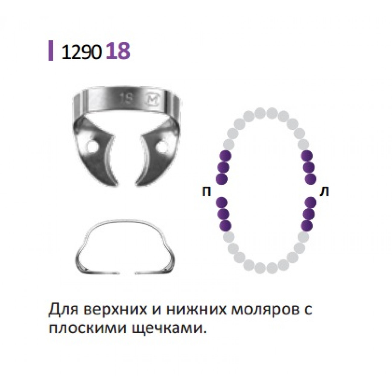 Кламп предназначен для использования на молярах и обеспечивает надёжную фиксацию коффердама на зубе. Он подходит для различных стоматологических процедур, таких как эндодонтическое лечение, установка коронок, виниров и других видов реставраций.