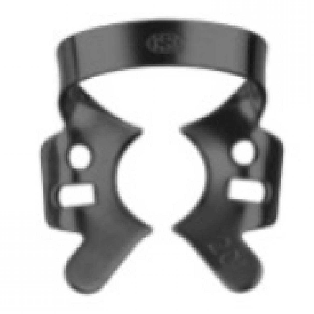 Кламп для коффердама KSK Dentech №201-В- Кламп для моляров верхней и нижней челюсти. Щечки симметричные. Отличается от клампа №200 наличием воронкообразных щечек, изогнутых в апикальном направлении для лучшей фиксации. Широкие щечки обеспечивают хороший обзор со всех сторон и не дают платку, при натяжении, приближаться к коронковой части зуба в момент ее препарирования ротационными инструментами. На боковых крыльях имеются дополнительные овальные отверстия, облегчающие снятие края перфорации латексного платка при установке.