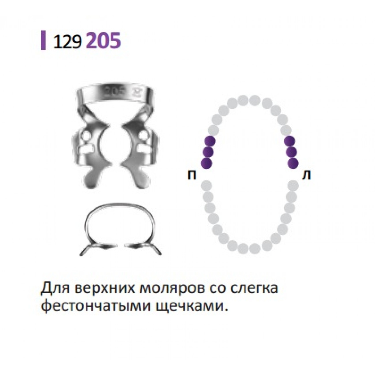 Характеристики клампа для коффердама №205 Medenta: