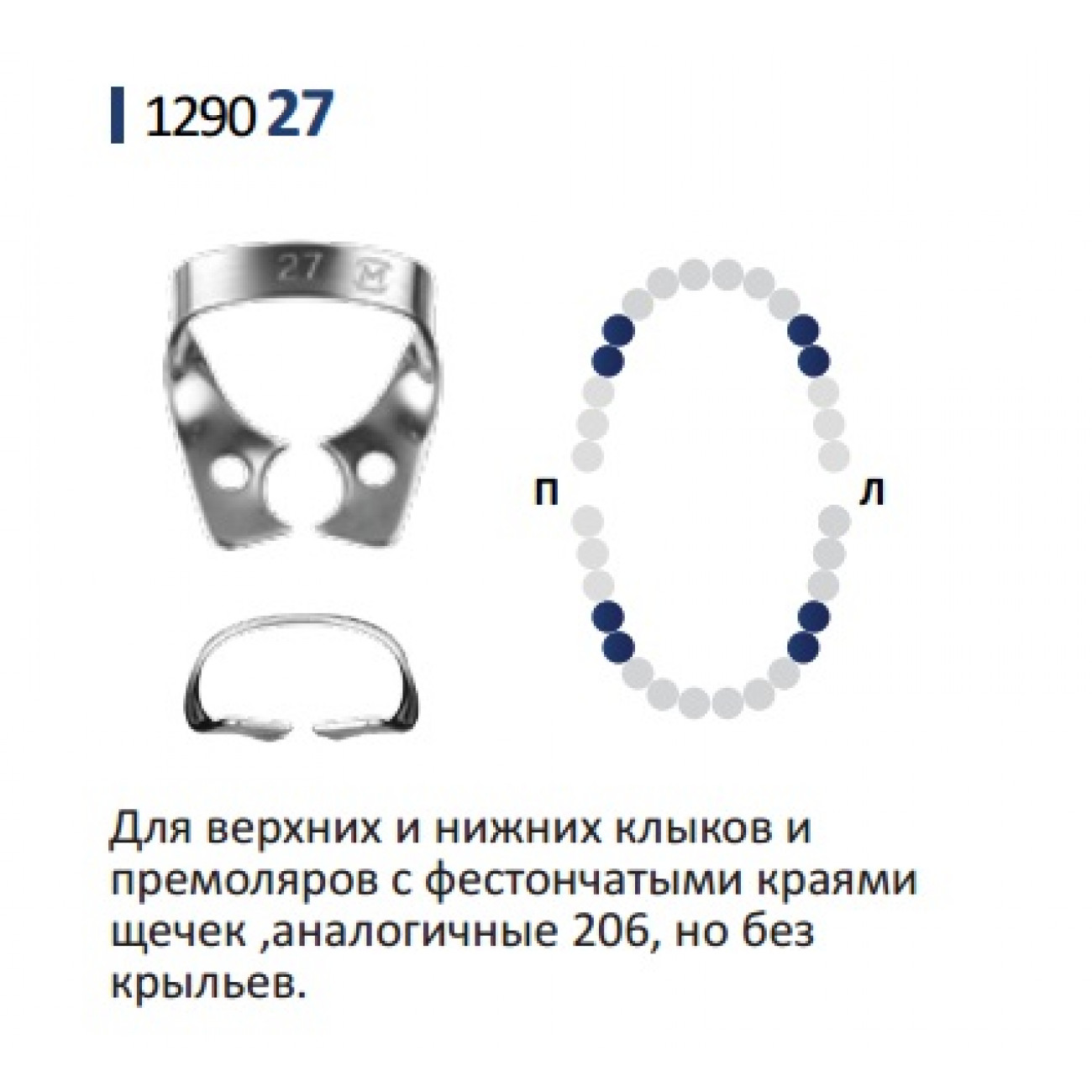Характеристики клампа для коффердама № 27 включают:
