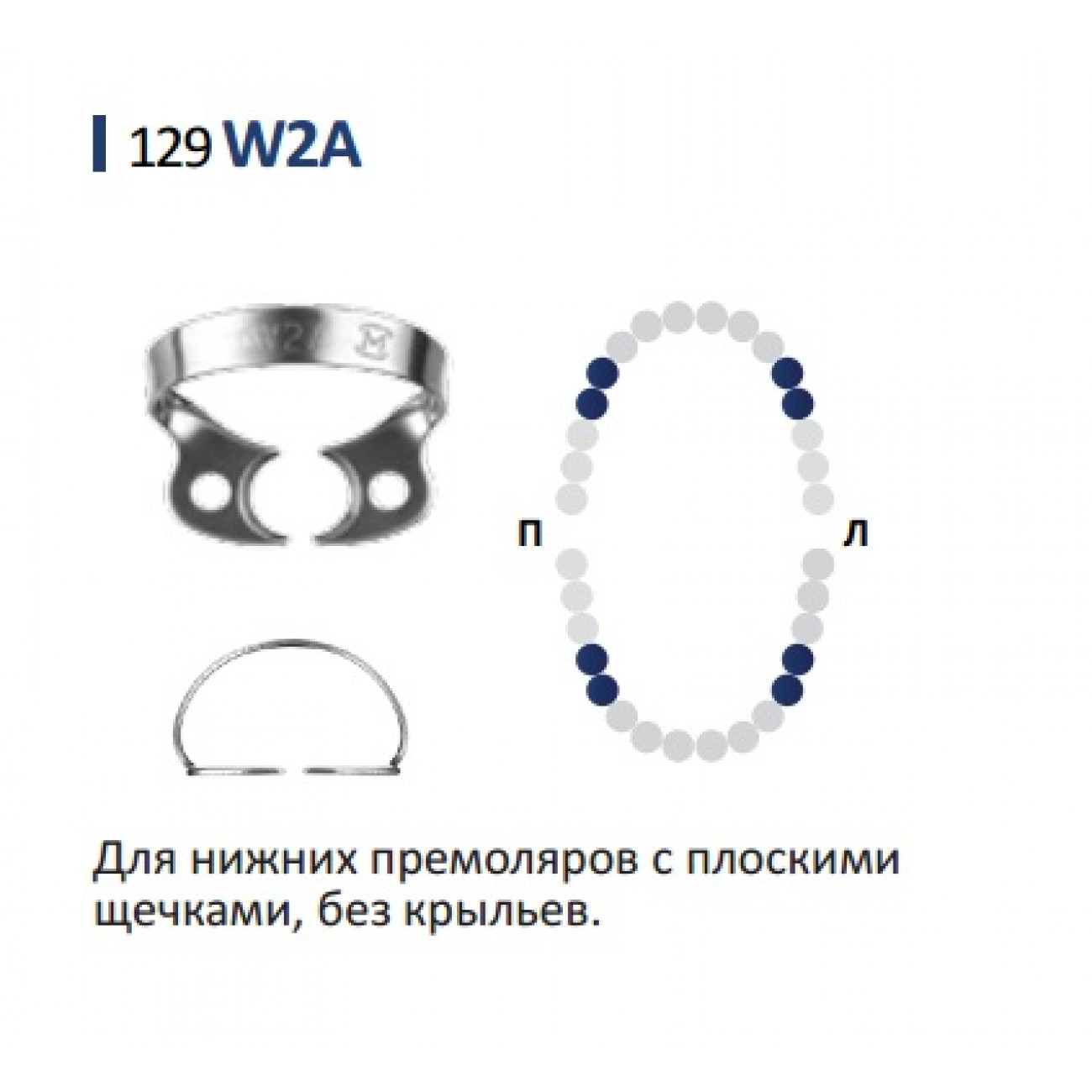 Кламп для коффердама Medenta (№W2A) предназначен для использования при проведении стоматологических процедур на премолярах.
