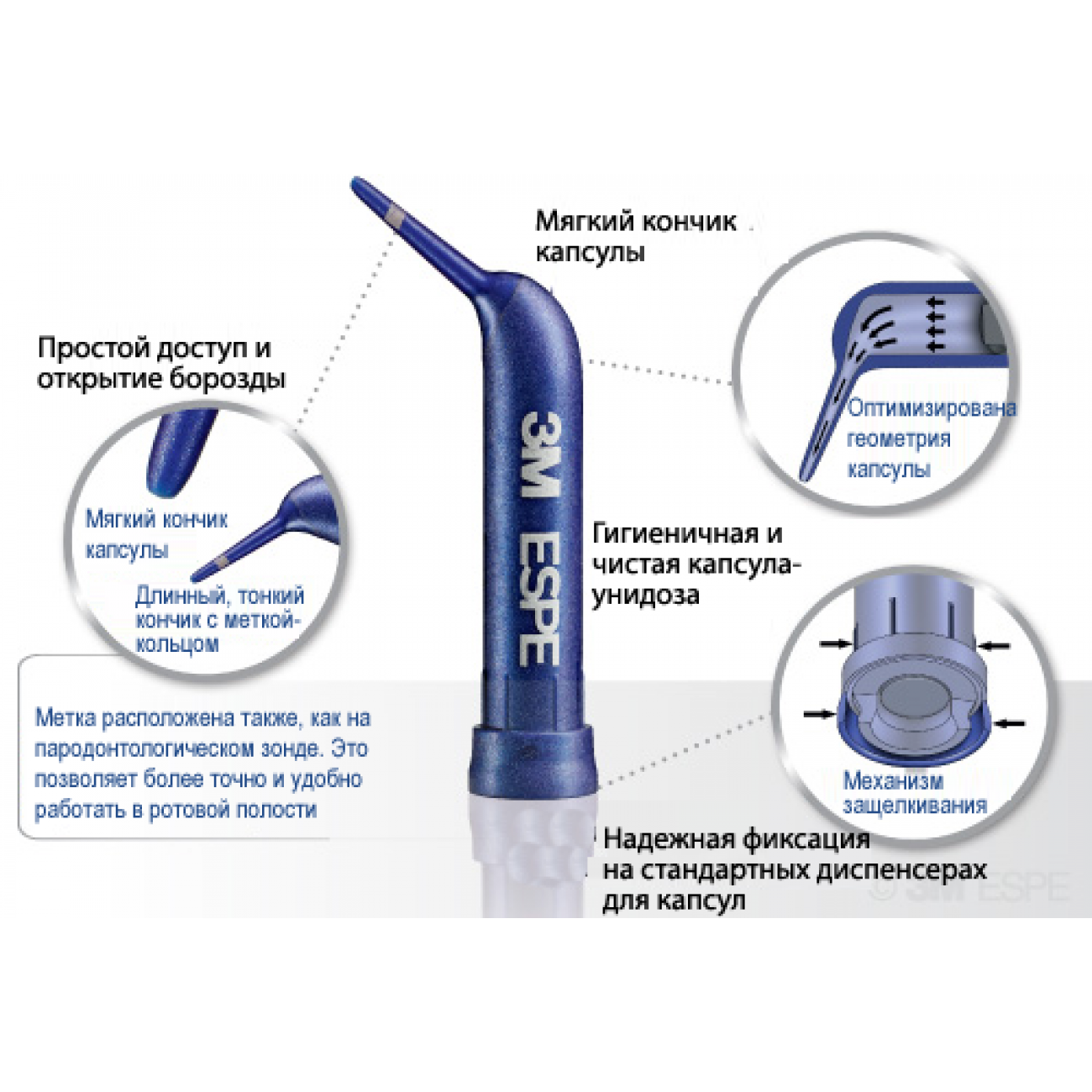 Более легкое внесение в зубодесневую борозду и в зону интрепроксимальных контактов благодаря форме наконечника