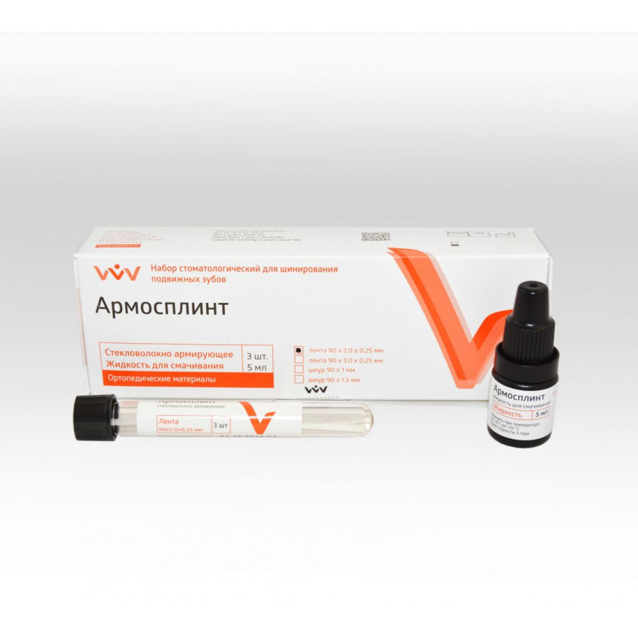 Стекловолокно «Армосплинт» представляет собой ленту специального высокомодульного плетения. Основа ленты - стекловолоконные нити, оплетенные полиэфирными микроволокнами (ширина ленты 2,0 и 3,0 мм, толщина - 0,25 мм). Лента силанизирована для улучшения связи с композитом.