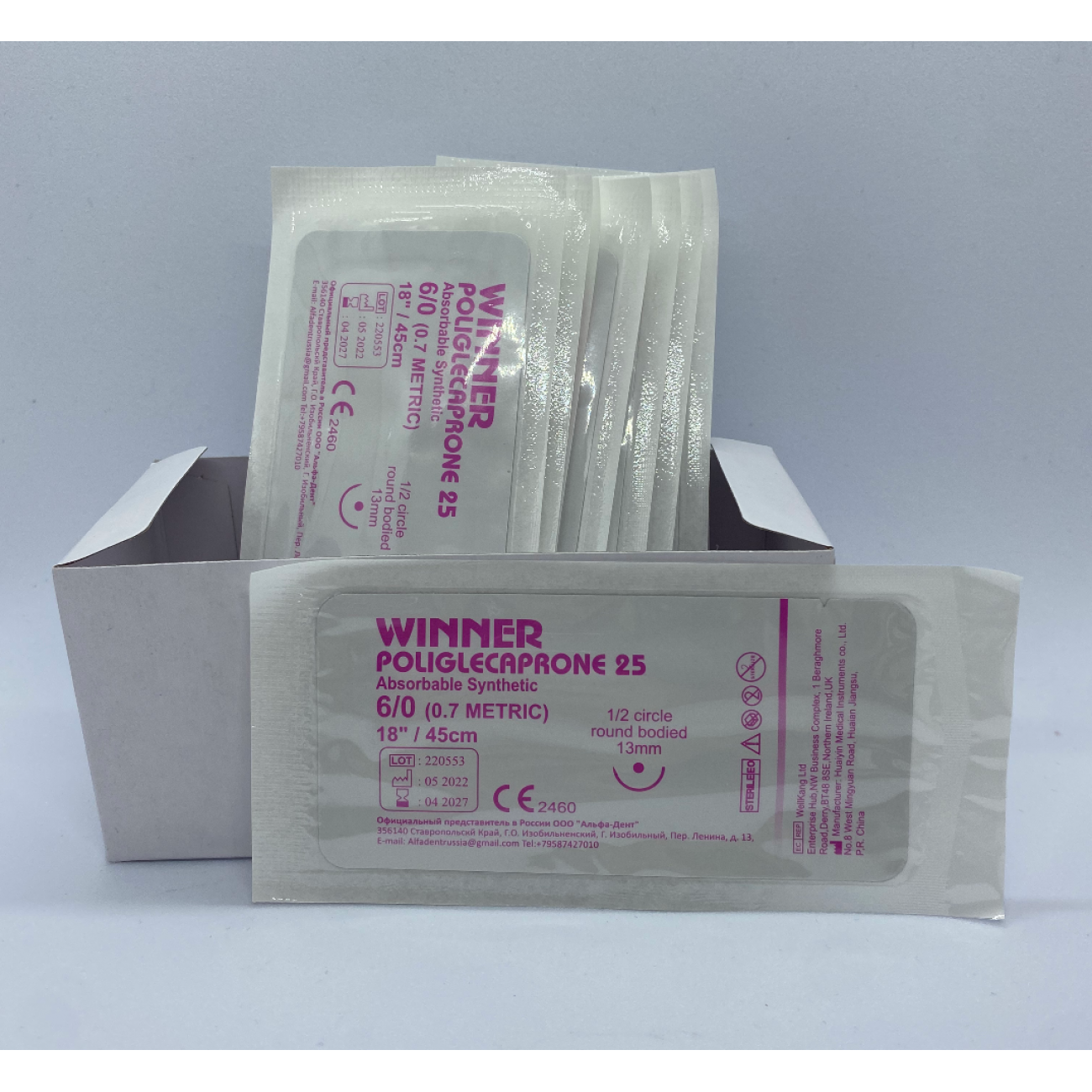✔ Poliglecaprone 25 используются для общего сближения мягких тканей, подкожного закрытия, также используются для закрытия брюшины, матки и влагалищной манжеты, косметической хирургии. Не рекомендуется для использования в сердечно-сосудистой хирургии, неврологической хирургии, офтальмохирургии и микрохирургии.