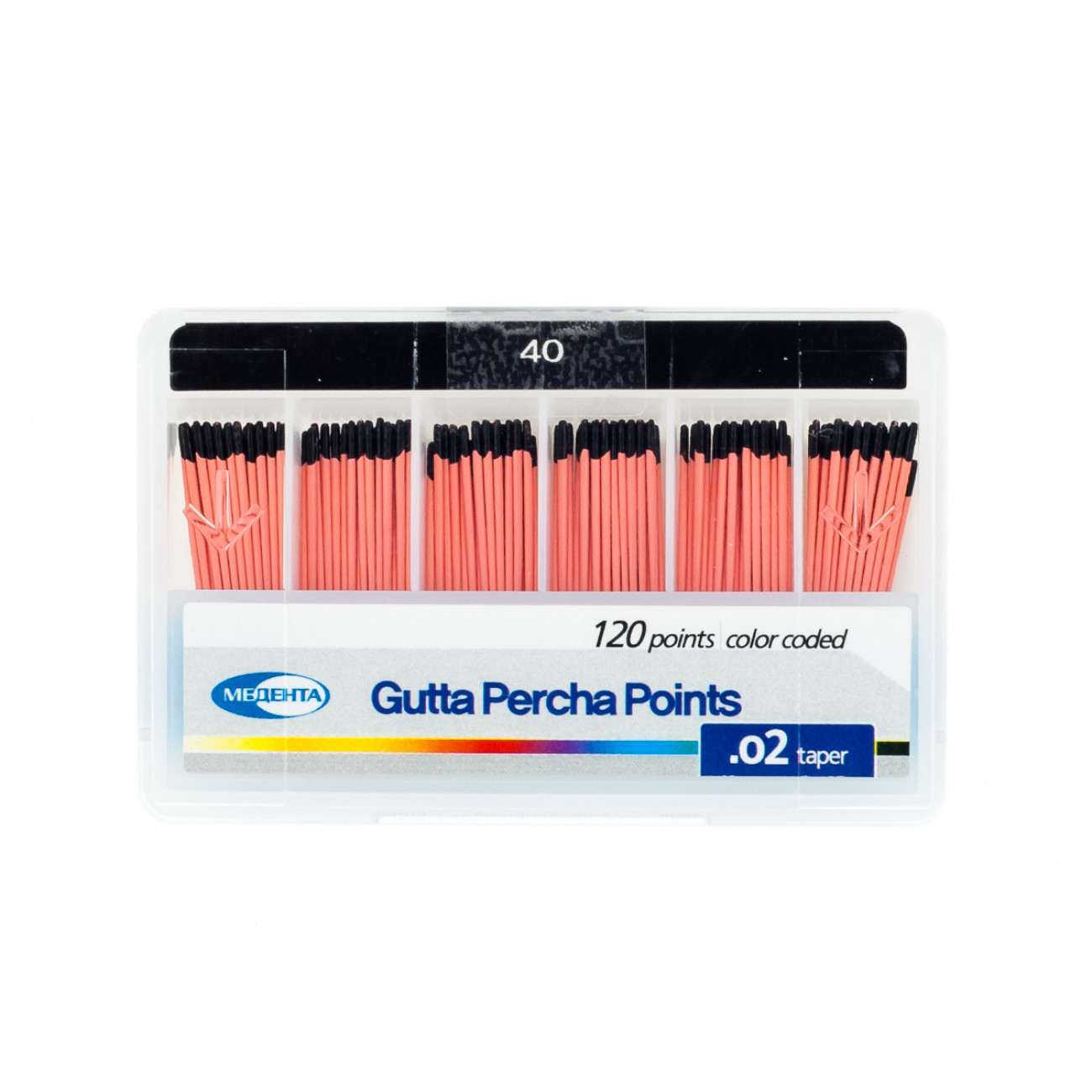 Штифты гуттаперчевые эндоканальные Медента .02 №40 используются для пломбирования корневых каналов зубов методом латеральной конденсации при проведении эндодонтического лечения.