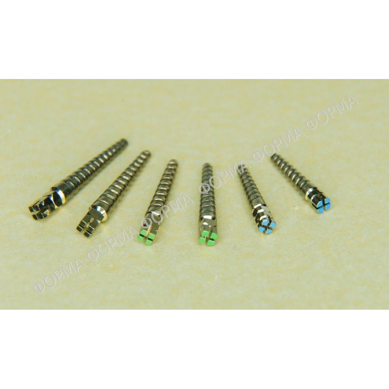 Титановые штифты выполнены из титанового сплава, обеспечивающего им исключительную прочность, легкость и полную биологическую совместимость с организмом человека. Этот материал по своим характеристикам прочнее стали, не подвержен коррозии даже в химически агрессивной среде полости рта, не образует опасных соединений, не вызывает аллергических реакций и обладает низкой теплоотдачей. Соответствие размеров и цветокодов маркировки торца привычным для врача стандартам создает дополнительное удобство при установке штифта.