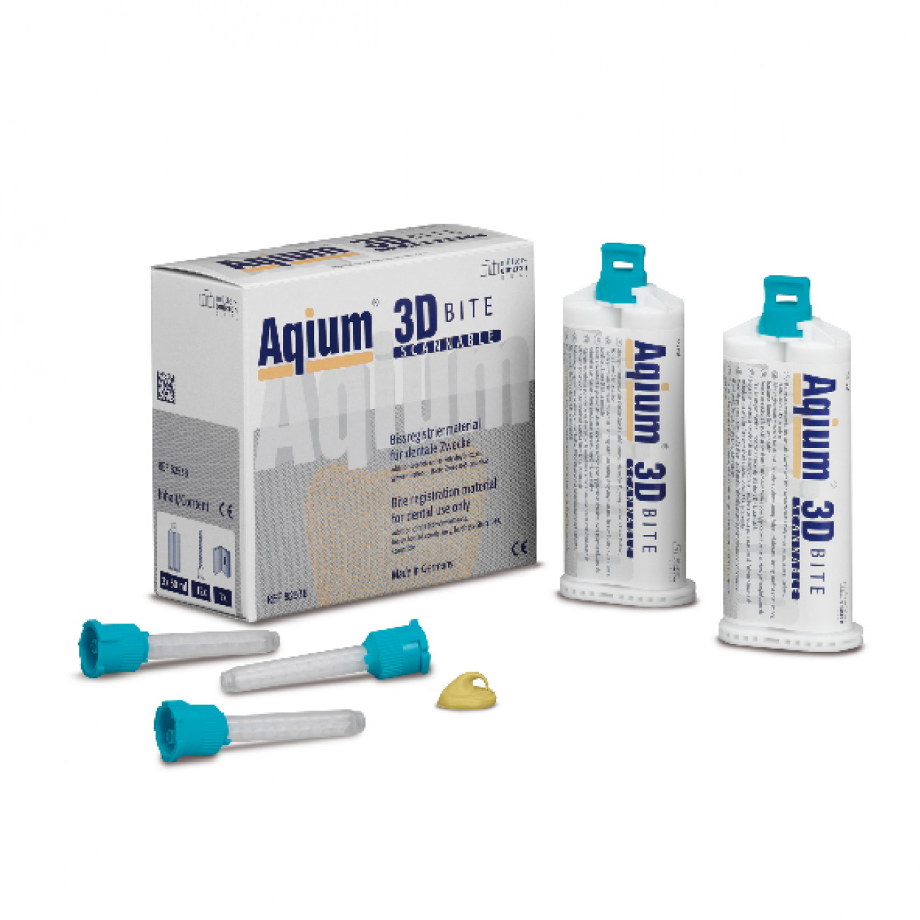 Aqium 3D BITE, уникальный материал на стоматологическом рынке, был специально разработан для использования в CAD/CAM системах. Новый состав AQIUM 3D BITE отлично воспроизводит 3D-данные, такие как окклюзионные поверхности и зубы-антагонисты. Дополнительное использование порошка или спрея не требуется.