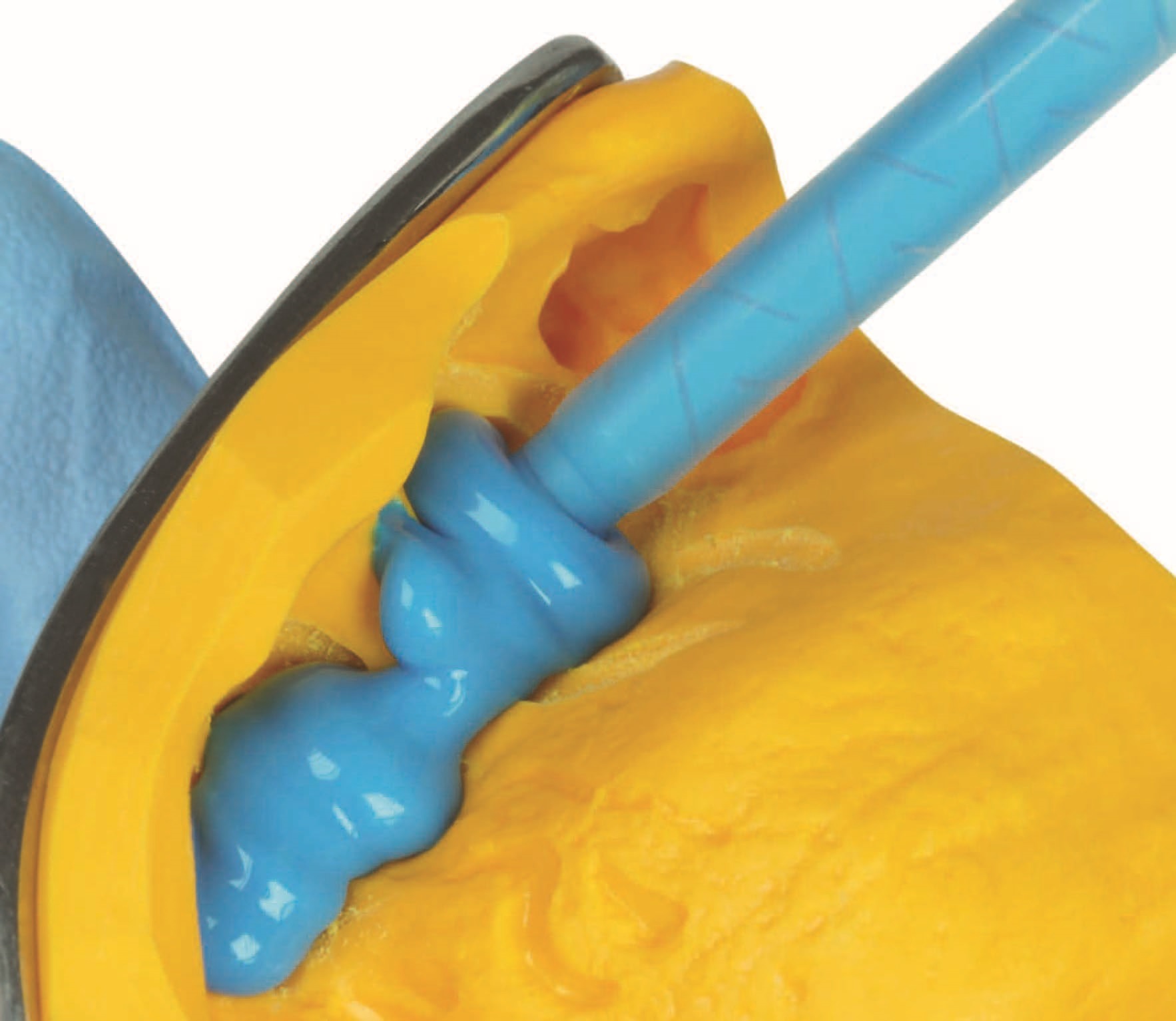 Жидкотекучий оттискной материал Лайт Боди Нормал Сет высокой вязкости можно смешивать вручную или при помощи пистолета-диспенсера для корригирующего силикона.