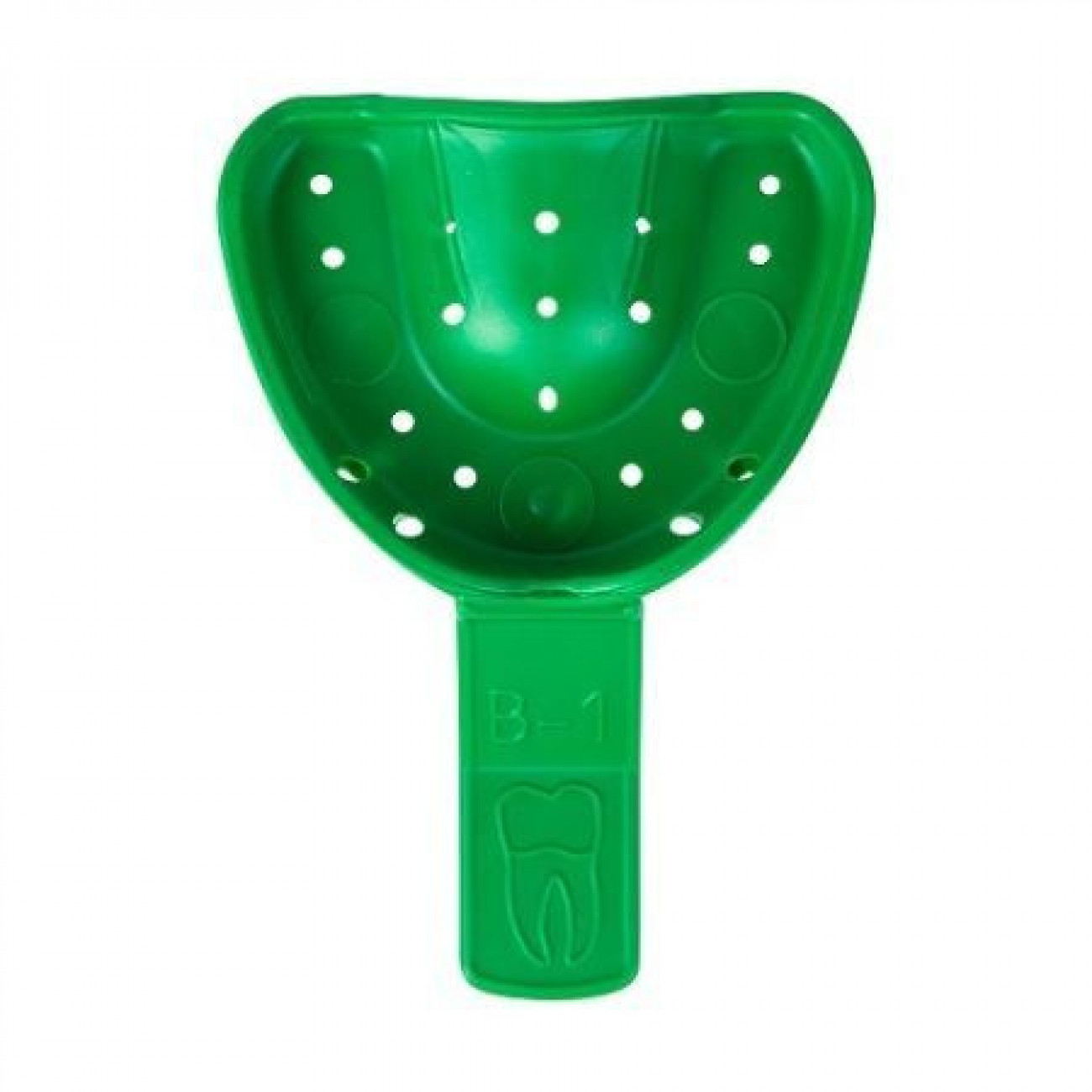 Верхняя малая стоматологическая слепочная ложка В-1 — специализированный инструмент, используемый в ортопедической стоматологии для снятия слепка зубов верхней челюсти. Для удобства идентификации ложки малого размера выполнены из пластика зелёного цвета, что ускоряет выбор подходящей ложки в процессе работы.