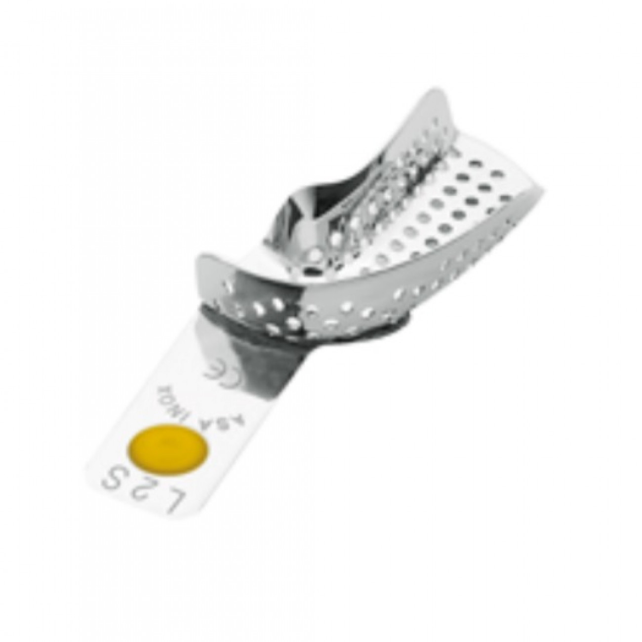 Ложка слепочная, половинка 2801-L2S(Правый верх-левый низ), изготовлена из стали, предназначена для снятия точных оттисков зубов. Используется в стоматологии для создания качественных зубных протезов и коронок.
