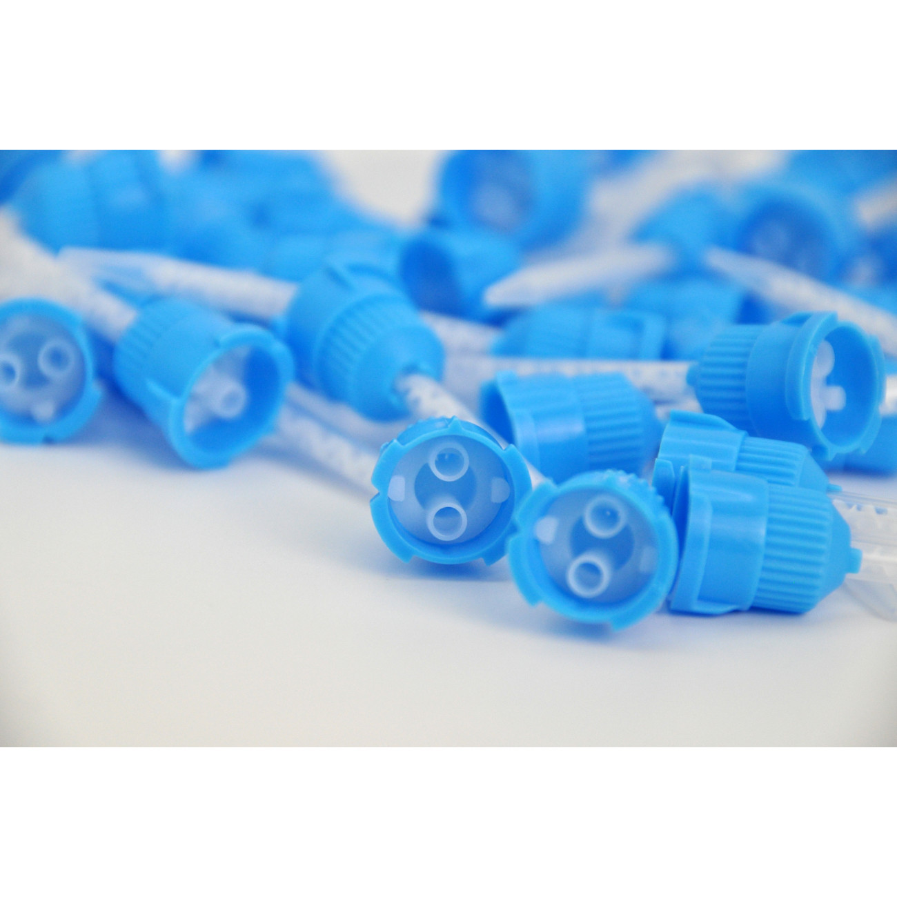 Стоматологическая смешивающая насадка на картридж сине-белого цвета предназначена для равномерного комбинирования основной массы и катализатора пластмасс для временных ортопедических протезов. От качества смешивания зависит как время полимеризации, так и финальная однородность пластмасс.