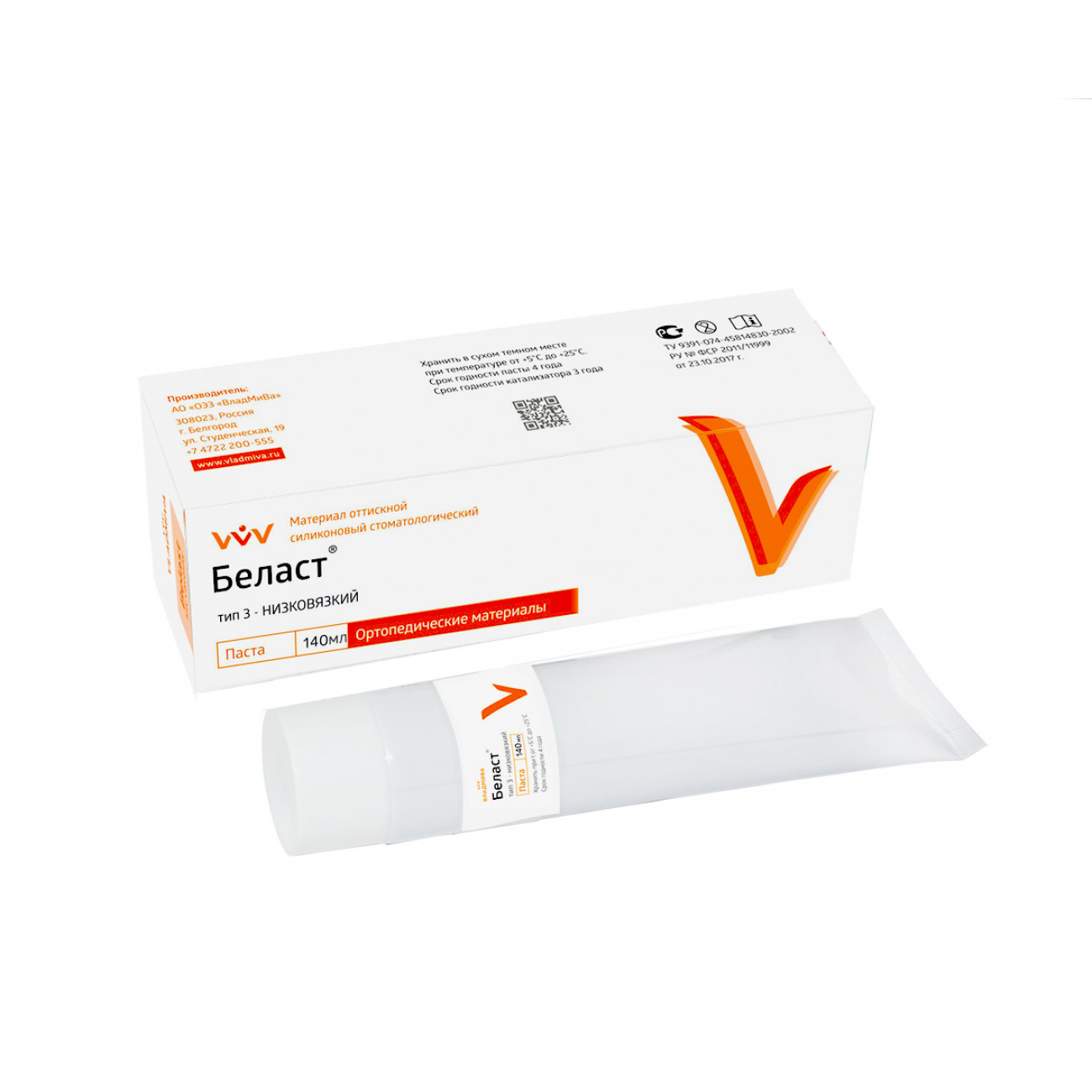 «Беласт» НИЗКОВЯЗКИЙ (ИСО 4823, тип 3) силиконовый оттискной материал, представляющий собой наполненную силиконовую композицию холодного отверждения конденсационного типа.