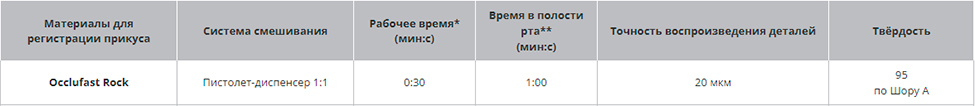 | Характеристики Оклюфаст Рок А-Силикон для регистрации | |