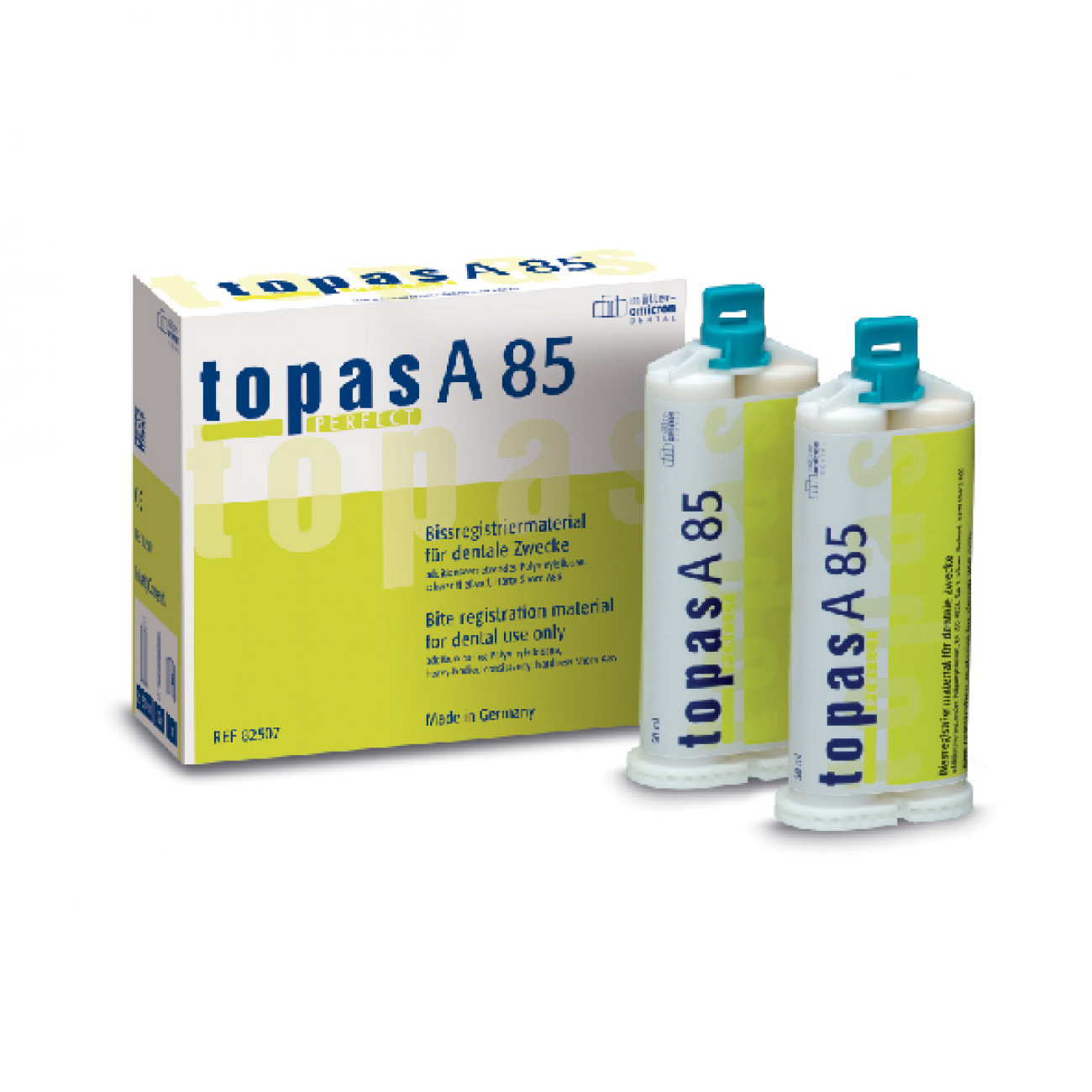 topas PERFECT A85 - это материал оптимальной жесткости для регистрации прикуса на А-силиконовой основе. Благодаря своей вязкости, масса имеет минимальное сопротивление при надкусывании, что обеспечивает простоту и удобство процесса регистрации прикуса. Материал очень прочный и при этом эластичный, то есть он не разрушается при достаточно сильной нагрузке.