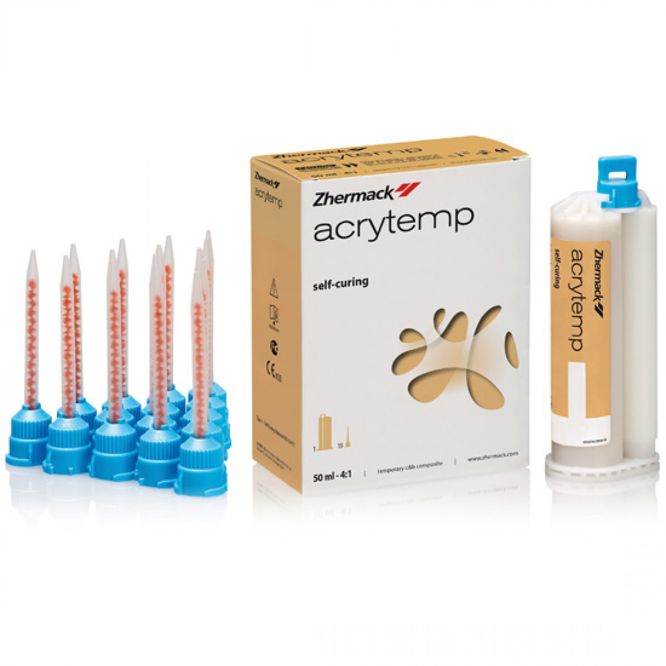 Удобные картриджи с насадками для смешивани в пропорции 4:1 гарантируют однородность материала и защиту от попадания пузырьков воздуха в ходе внесения пластмассы. Консистенция материала Acrytemp позволяет получать чрезвычайно тонкие и точные кромки реставраций. Формула без метилметакрилата практически не нагревается при полимеризации и не наносит повреждений тканям полости рта.