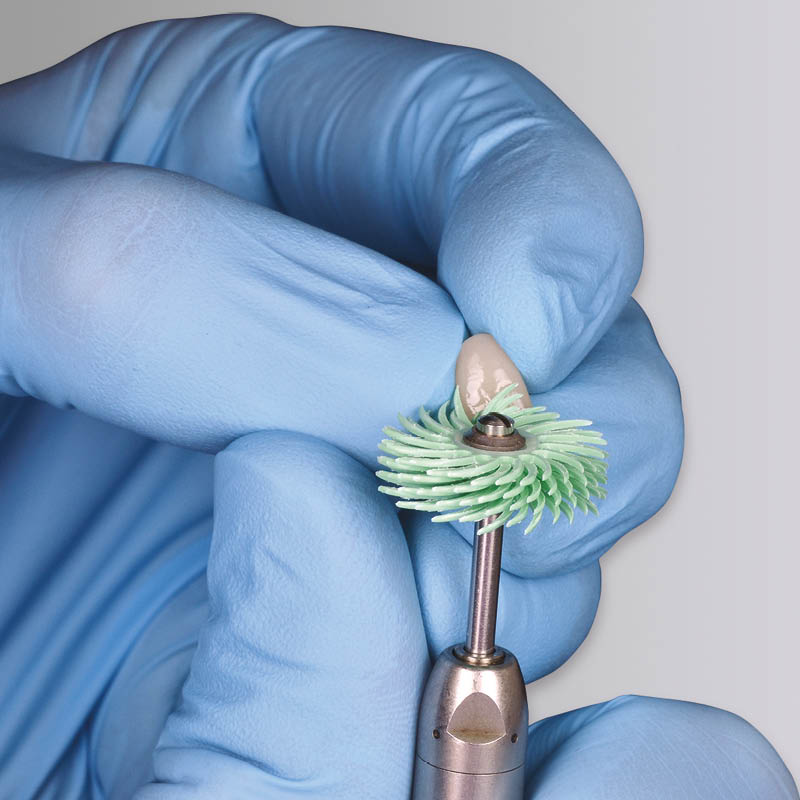 Если это невозможно, необходимо выждать 6 минут после начала нанесения, а затем обработать протез вращающимся инструментом или очень тонким абразивом.