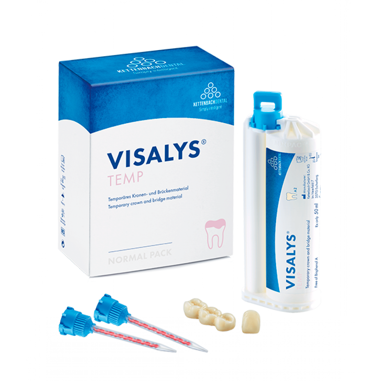 Пластмасса для временных коронок и мостов Визалис Темп А1 от компании Кеттенбах - продвинутый акриловый композит естественных оттенков, предназначенный для создания временных зубных протезов фронтальных зубов. Визалис Темп хорошо комбинируется с другими стоматологическими материалами - при необходимости временные протезы из пластмассы Visalys можно покрыть жидкотекучим светоотверждаемым композитом. При использовании Visalys Temp для коррекции конструкций из пломбировочного композита бондинг не требуется.