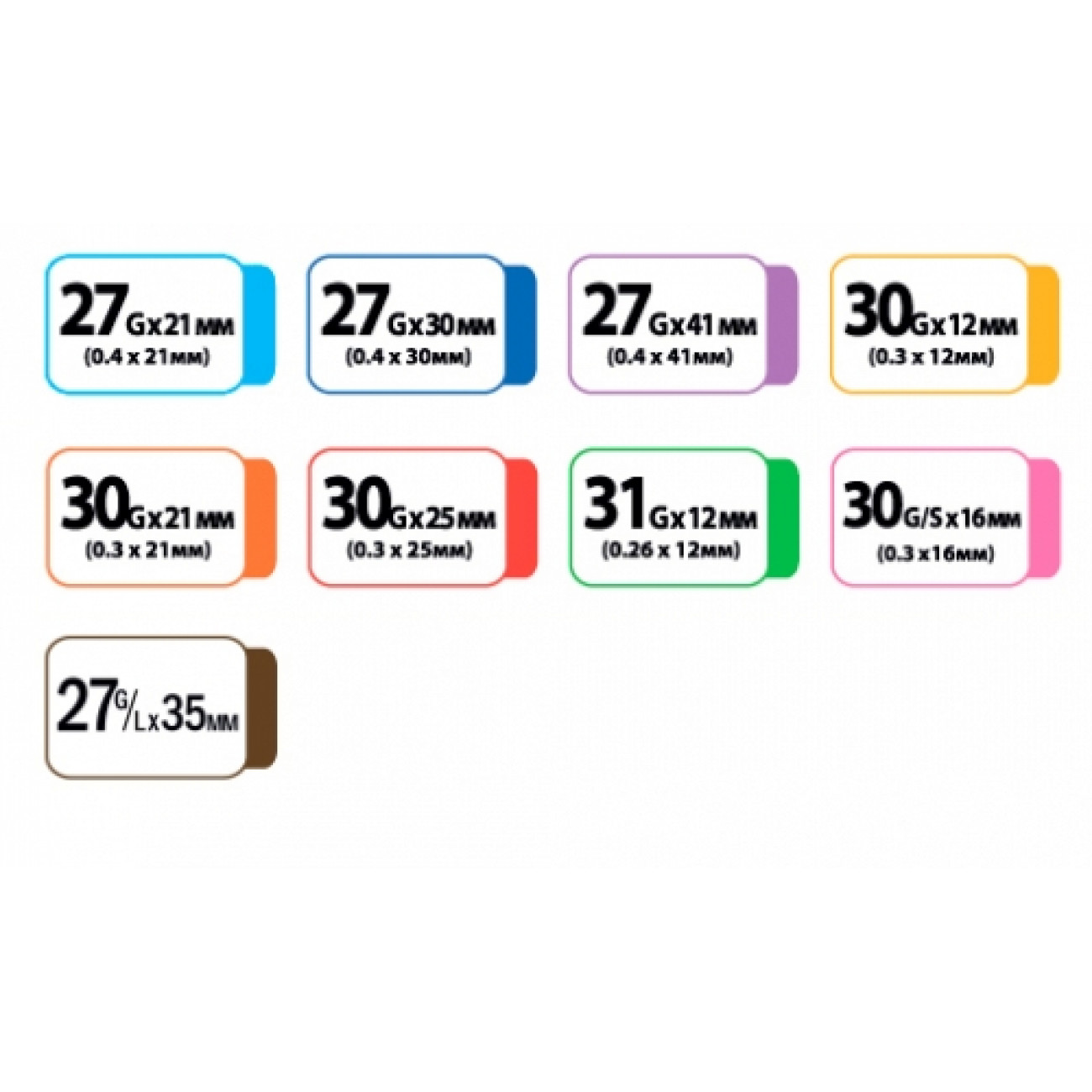 Легко определить толщину иглы по цвету канюли