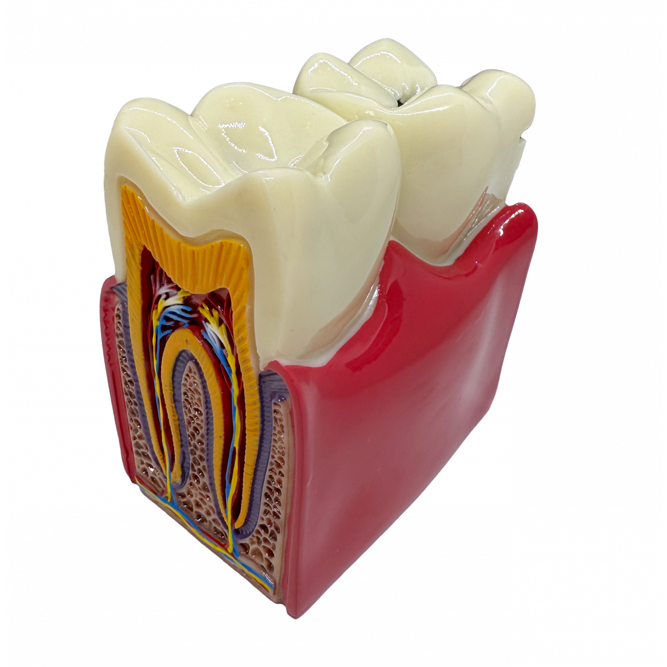 Двусторонняя стоматологическая модель «Здоровый зуб / Кариес» — это обучающее пособие, созданное для наглядной демонстрации различий между здоровой анатомией зуба и стадиями его кариозного поражения. Выполненная из прочной эпоксидной смолы, эта компактная модель детально воспроизводит поверхность моляра: одна сторона демонстрирует здоровый зуб с естественными фиссурами и контактными зонами, противоположная — прогрессирующий кариес с повреждением эмали и дентина. Такой контраст позволяет стоматологам легко объяснять пациентам механизмы развития заболеваний, подчёркивая важность своевременной гигиены и профилактики, а студентам — изучать этапы формирования кариозной полости и принципы её обработки. Её анатомическая точность, долговечность и функциональность делают данную модель незаменимым элементом в профессиональной практике и обучении.