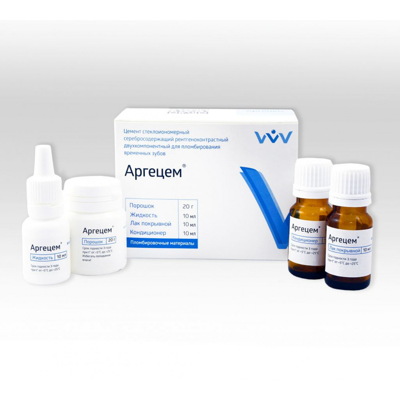 Цемент «Аргецем» содержит мелкие частицы серебра, что повышает твердость цемента, устойчивость к истиранию, улучшает прочностные характеристики, обеспечивает рентгеноконтрастность.