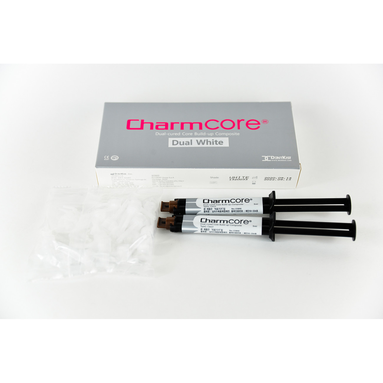 CharmCore - нестерильный, состоит из двух компонентов: основы и катализатора. Компоненты в виде пасты заправлены в двойной шприц (картридж).