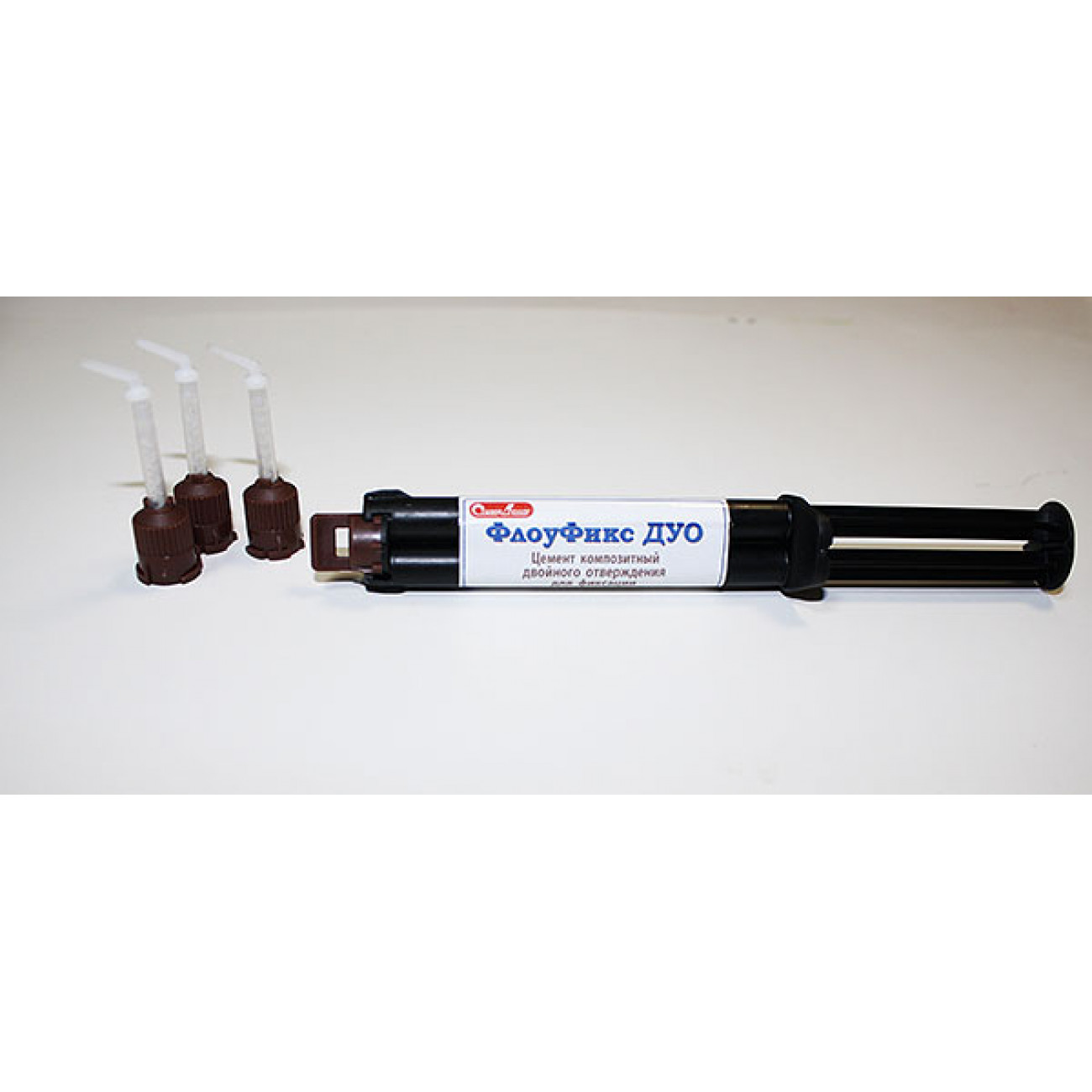 «ФЛОУФИКС ДУО» выпускается в двухкамерных шприцах в виде двух паст (универсальной и каталитической), которые смешиваются в соотношении 1:1.