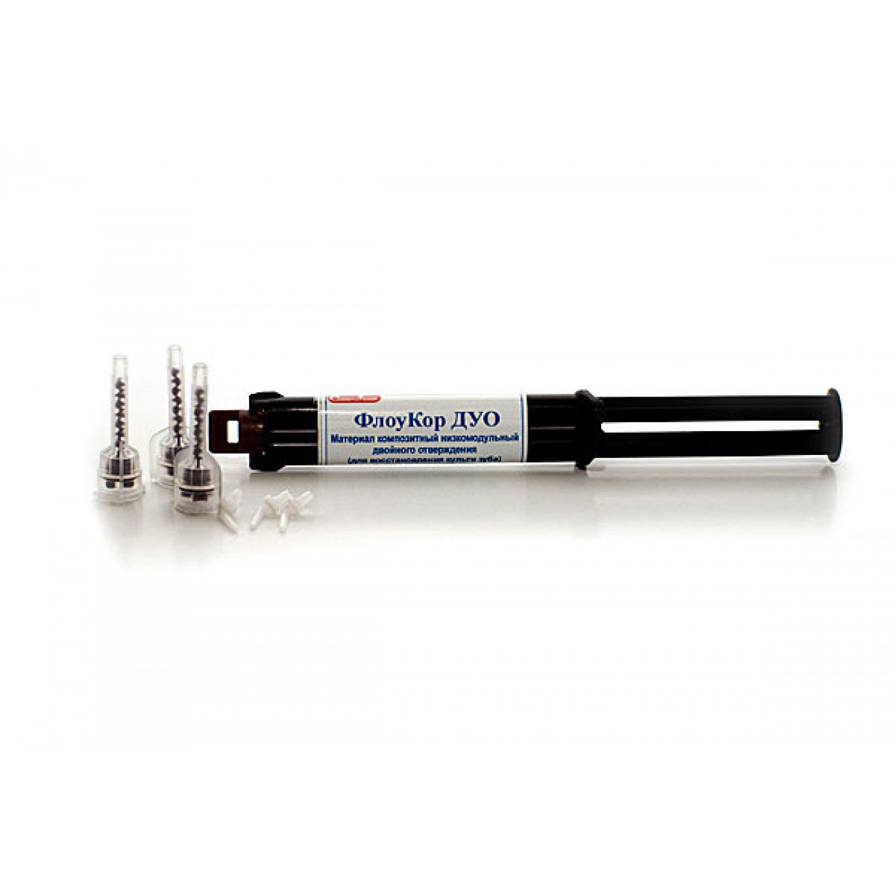 ФЛОУКОР ДУО композитный текучий материал двойного отверждения для восстановления культи зуба и фиксации стекловолоконных и анкерных штифтов, двухкамерный шприц 2х4 гр., принадлежности.