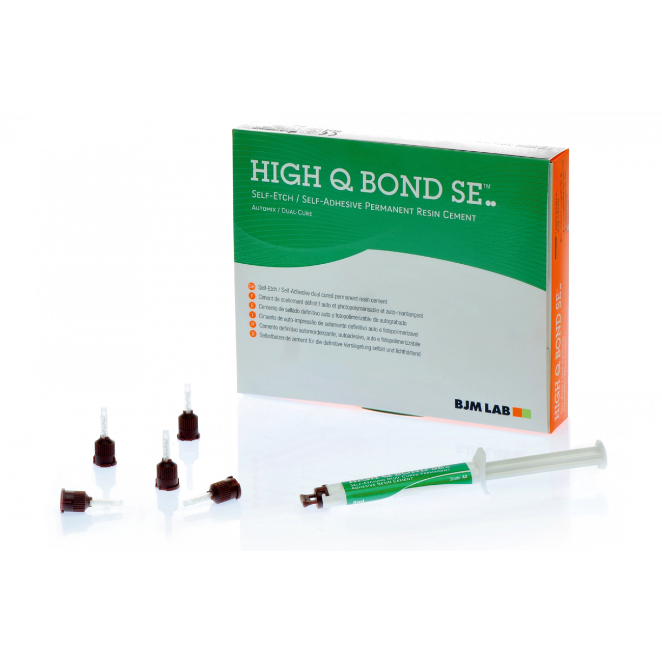 Цемент композитный самопротравливающий, самоадгезивный High-Q-Bond SE Adhesive resin Cement A2, в наборе: двойной шприц 5 мл + 10 канюль + 10 внутрирот. канюль, артикул: 100050SE RU, производитель: BJM LAB (ИЗРАИЛЬ)