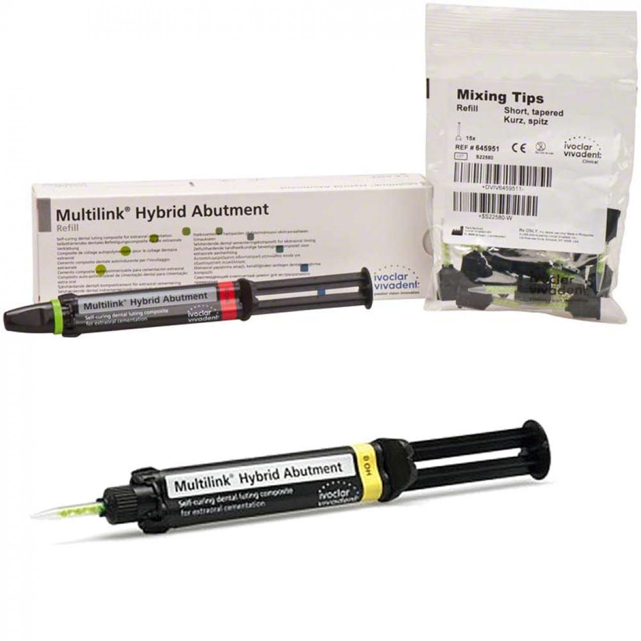 Multilink Hybrid Abutment - это самотвердеющий фиксирующий композит для постоянного склеивания керамических структур из стеклокерамики на основе дисиликата лития (LS2) и оксида циркония с имплантами из титана/титановых сплавов и оксида циркония.
