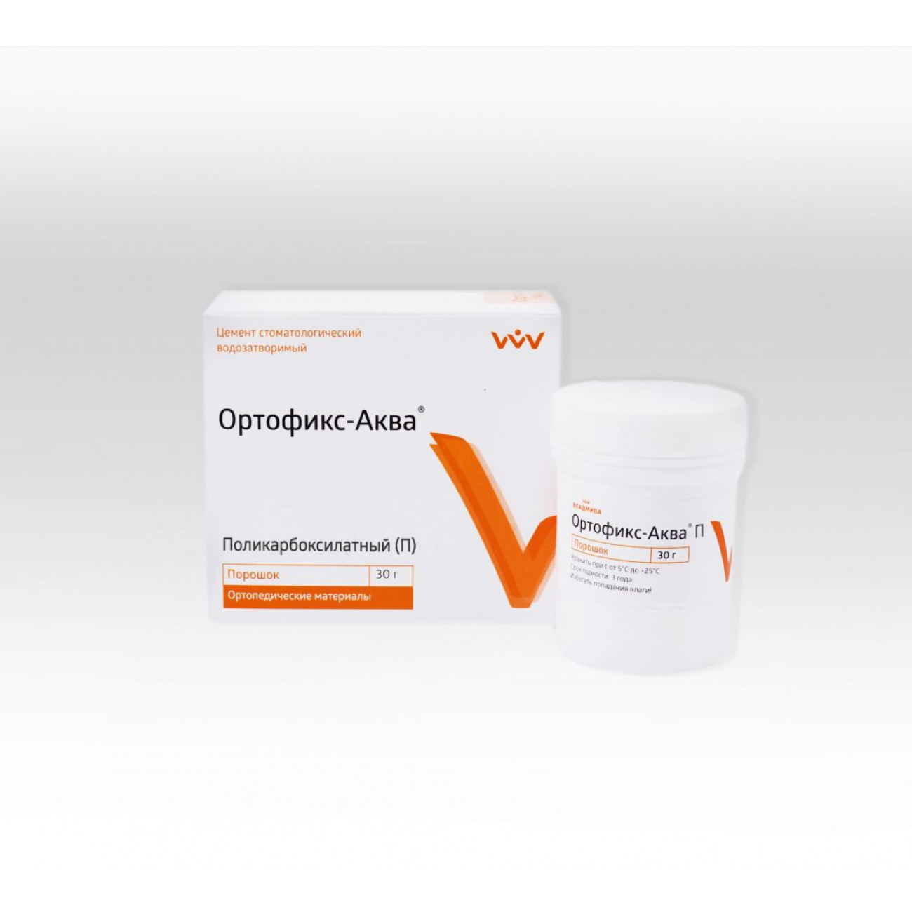 Поликарбоксилатный водоотверждаемый стоматологический цемент Ортофикс-Аква П от компании ВладМиВа разработан для ортопедического лечения пациентов с использованием несъемных зубных протезов. Цемент Ортофикс-Аква не вызывает дискомфорта при нанесении, обладает хорошей адгезией к дентину, эмали и к основным конструкционным стоматологическим материалам. Порошок легко смешивается с дистиллированной водой до получения необходимой консистенции.