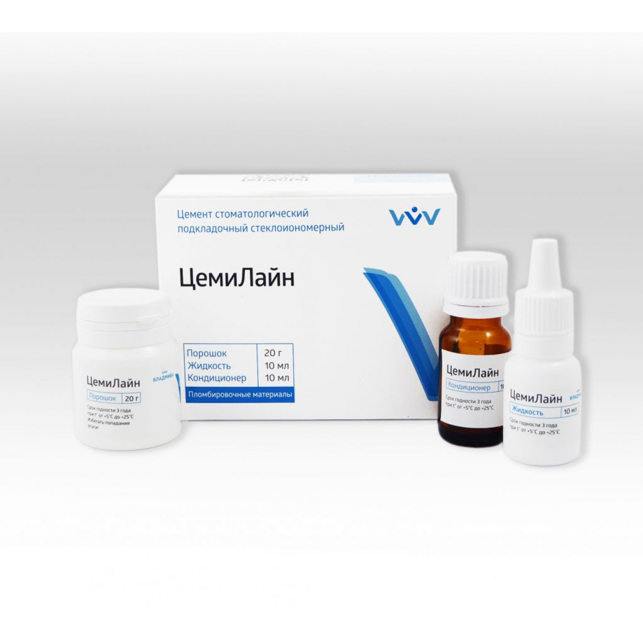Пломбировочный материал «ЦемиЛайн» выпускается в виде комплекта порошок-жидкость. Порошок представляет собой алюмофторсиликатное стекло с повышенным содержанием фтора, жидкость - раствор модифицированной полиакриловой кислоты. Пролонгированное выделение ионов фтора способствует реминерализации размягченного дентина, оказывает бактерицидное действие, эффективно препятствует развитию вторичного кариеса.