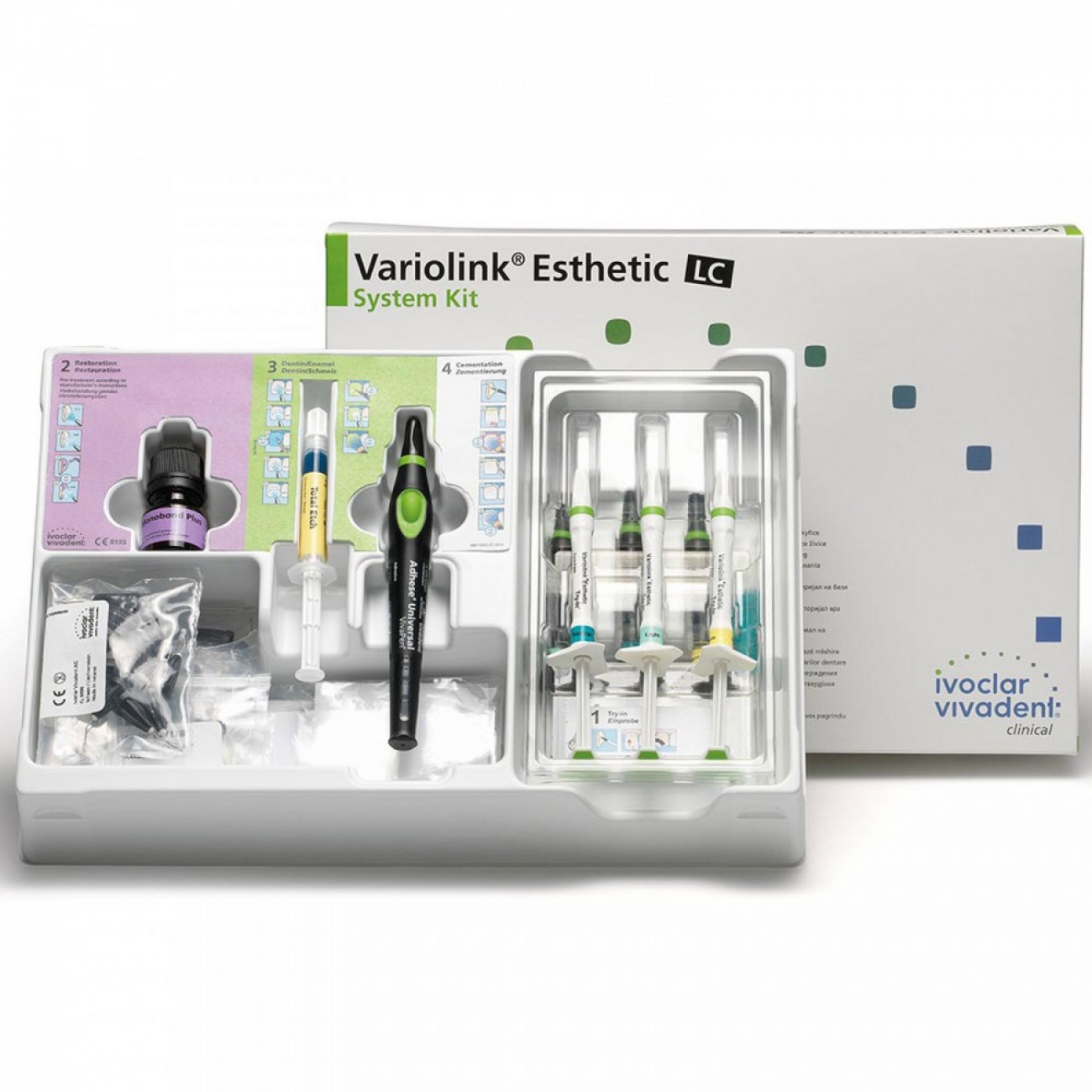 Набор Вариолинк эстетик выпускается в двух вариантах: cветового отверждения (Variolink Esthetic LC) и двойного отверждения (Variolink Esthetic DC).