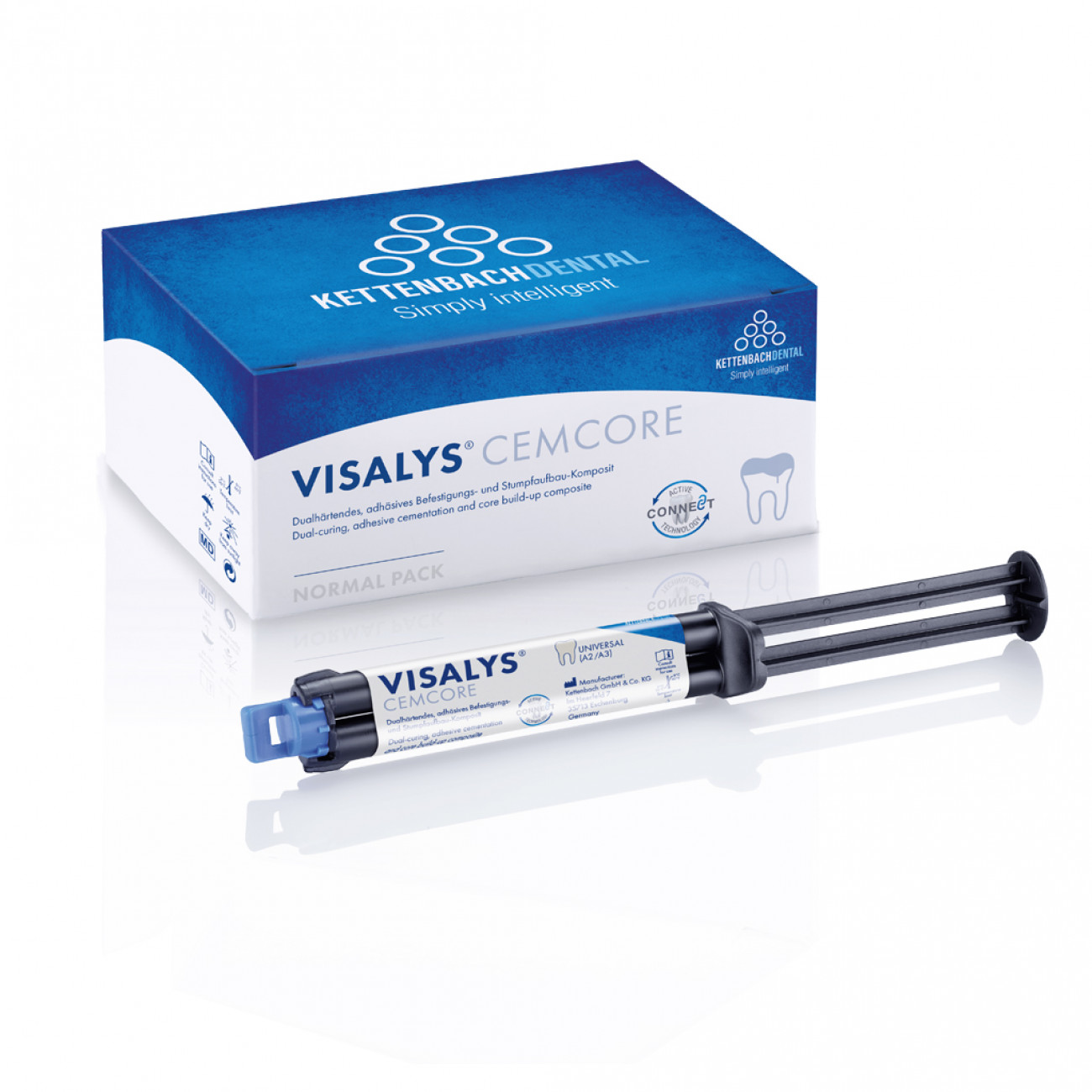 Visalys CemCore — это цемент, композит двойного отверждения для адгезивной фиксации. Подходит для фиксации всех непрямых реставраций и совместим со всеми стоматологическими материалами (металл, оксидная керамика, силикатная керамика и т. д.). Наряду с традиционными реставрациями, такими как коронки и мостовидные протезы, могут быть изготовлены и зафиксированы очень сложные реставрации, такие как мосты Мэриленд (адгезивные мосты), требующие чрезвычайной адгезионной прочности и высокоэстетичные реставрации, такие как виниры, требующие точной обработки и высокой стабильности цвета. Visalys CemCore также можно использовать для безопасного и простого восстановления культи.