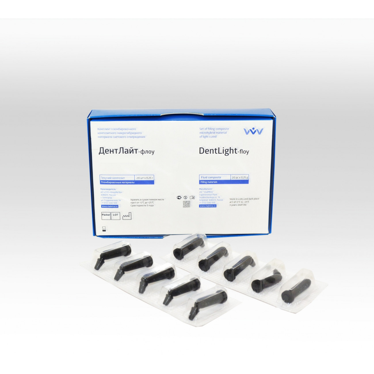 Текучий композит «ДентЛайт» флоу совместим со всеми светоотверждаемыми композитами и компомерами, что делает его универсальным в случаях необходимого комбинирования материалов.