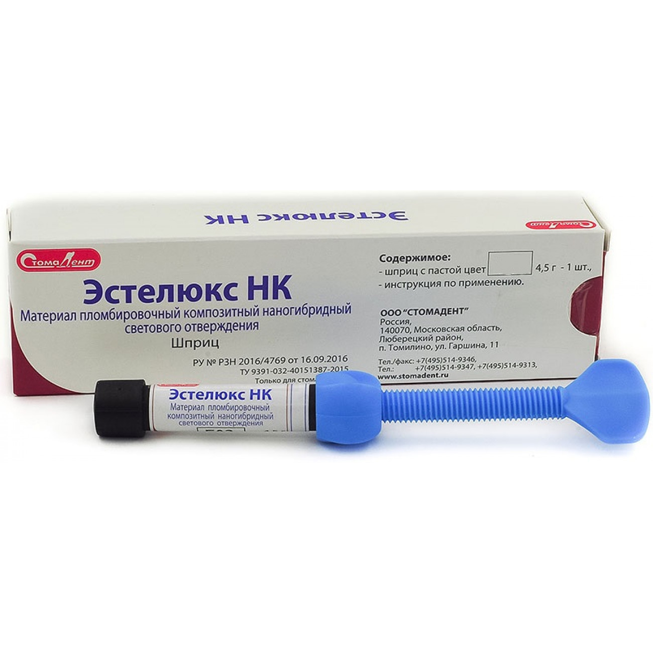 ЭСТЕЛЮКС НК шприц - композитный пломбировочный наногибридный материал светового отверждения с дисперсностью частиц от 0,04 мкн.