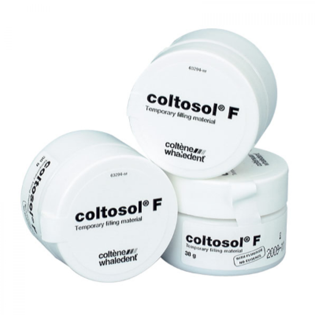 Coltosol F белый, рентгеноконтрастный, материал химического отверждения для временного пломбирования полостей зуба. Coltosol F является цинк-оксидный/цинк-сульфата цементом и предназначен для временного пломбирования полостей на период 1-2 недели.