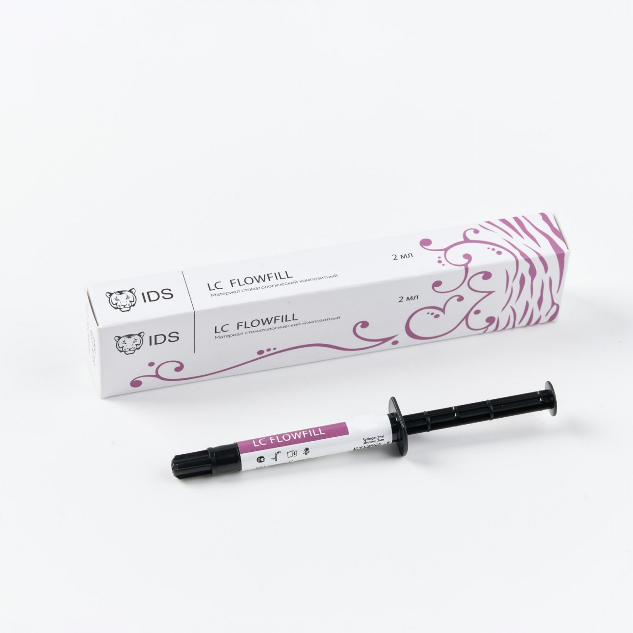 -LC FLOWFILL оттенок A2 – светоотверждаемый текучий микрогибридный композит для реставраций передних зубов и некоторых реставраций жевательных, а также для создания изолирующего слоя. В основе LC FLOWFILL метакрилатная смола и частицы неорганического наполнителя 0,05-1 µm. Общее содержание наполнителя по массе составляет 61%, общий объем наполнителя – 41%. Композитный материал соответствует требованиям DIN EN ISO 4049.