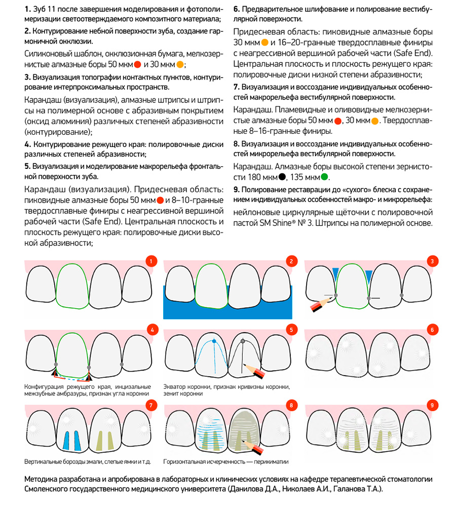 Рекомендации по контурированию, шлифованию и полированию композитных реставраций передних зубов (III, IV классы по Блеку, композитные виниры)