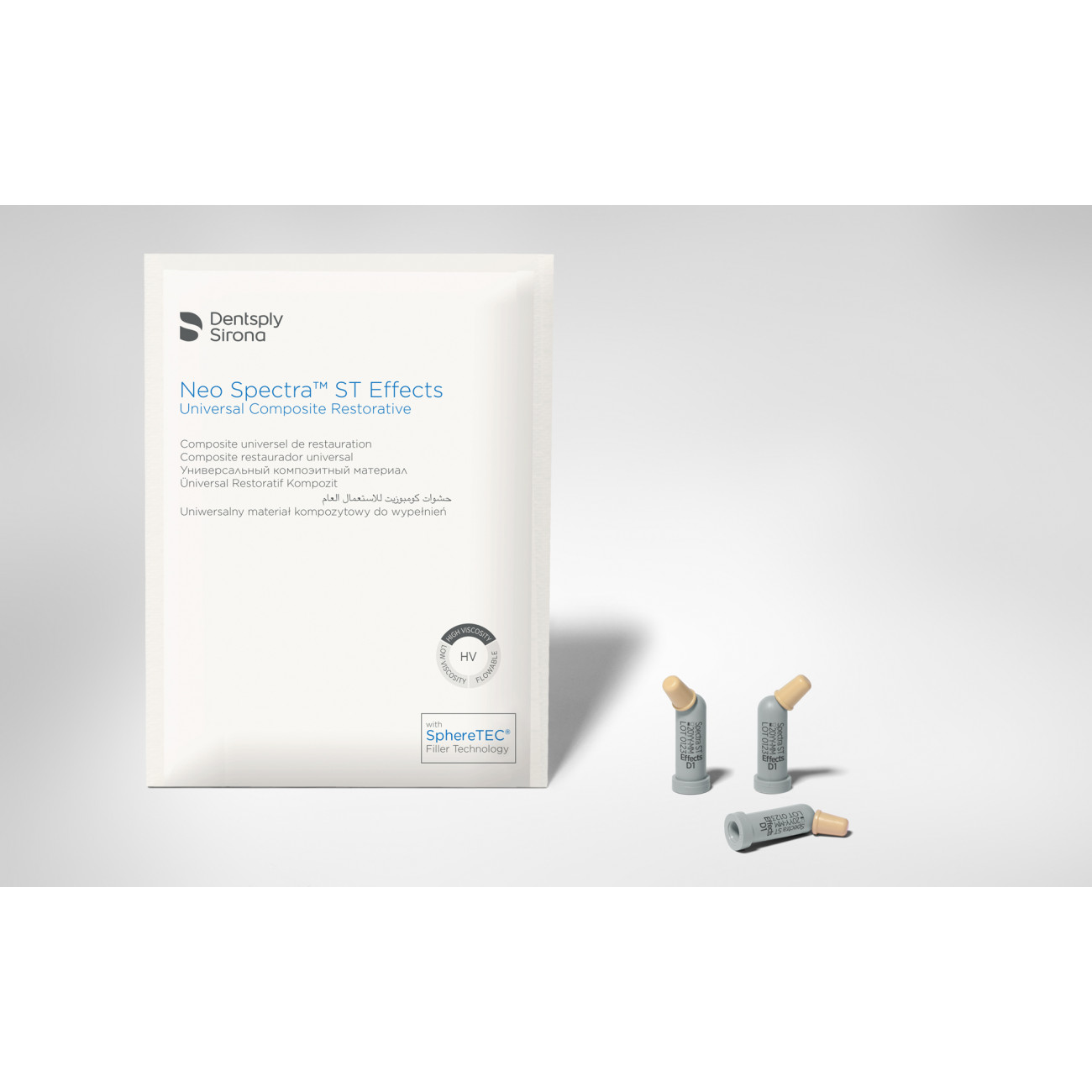 Neo Spectra™ ST Effects доступен только в вязкости HV (высокая вязкость), т.к. она является более предпочтительным вариантом для моделирования дентинного ядра и режущего края.