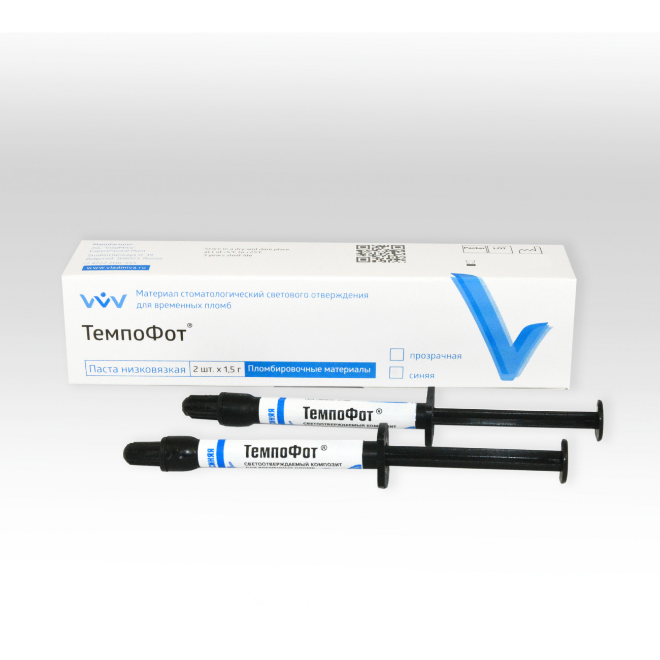Материал «ТемпоФот» выпускается в виде пасты (прозрачной и синей), в состав которой входят: активаторы светового отверждения; стабилизаторы; технологические добавки, обеспечивающие оптимальную консистенцию; бактерицидное вещество (хлорид бензалкония), которое оказывает микробостатическое и микробоцидное действие на бактерии и кандиды.