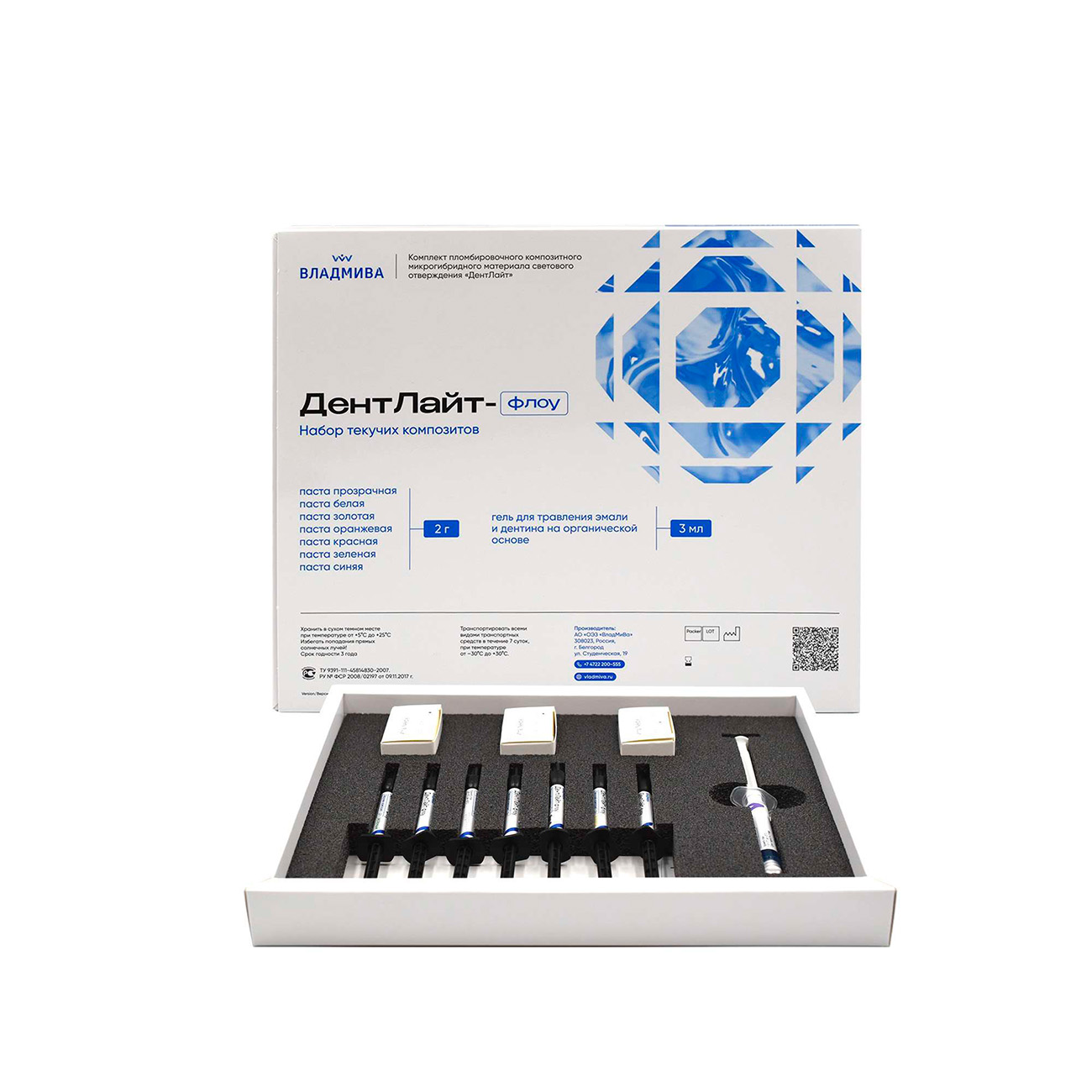 | Характеристики ДентЛайт флоу КОЛОР набор Текучий | |