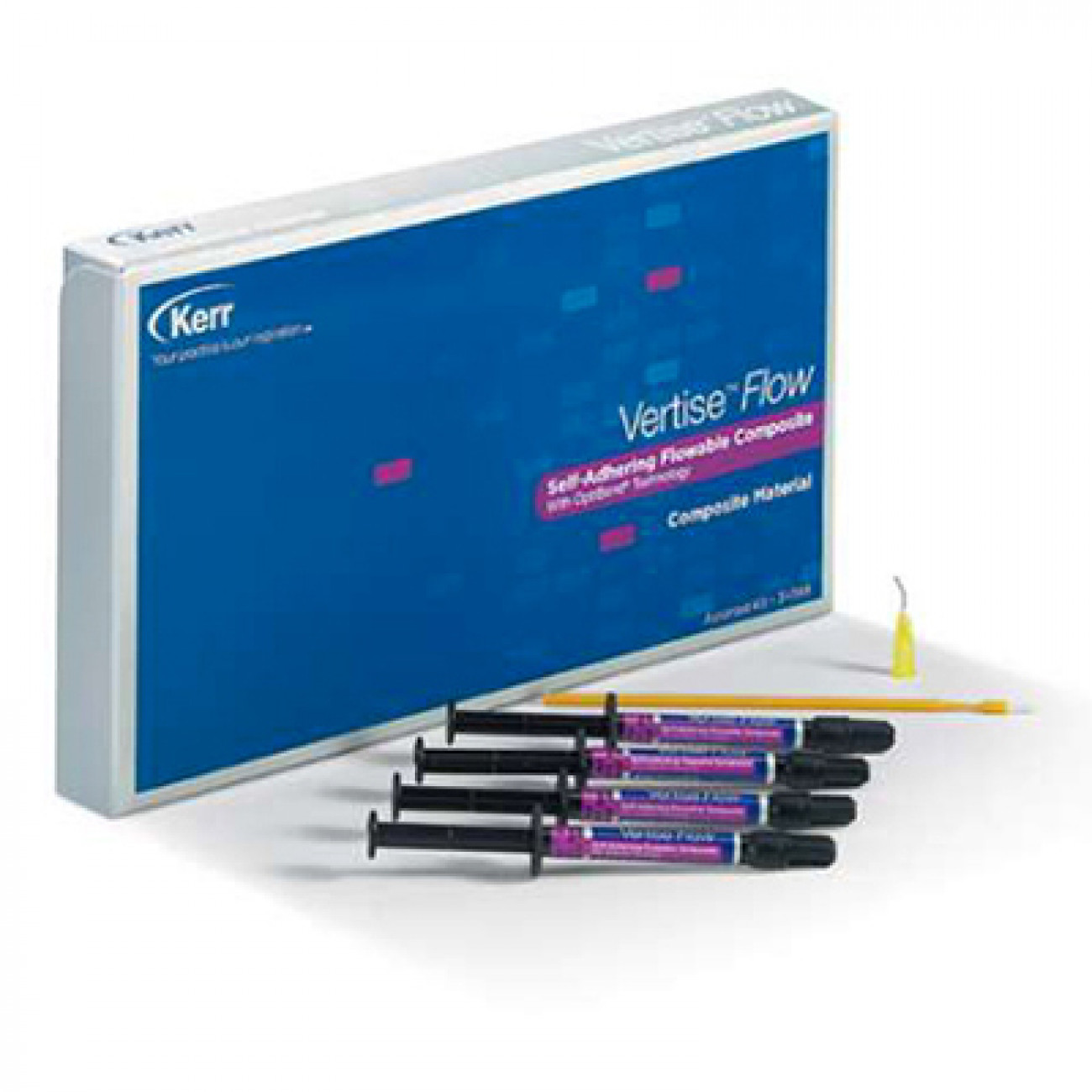 4 шприца (по 2 г) эмаль A2, A3, A3.5, универсальный дентин; 40 насадок, 40 щеточек. Особенности и преимущества Vertise™ Flow