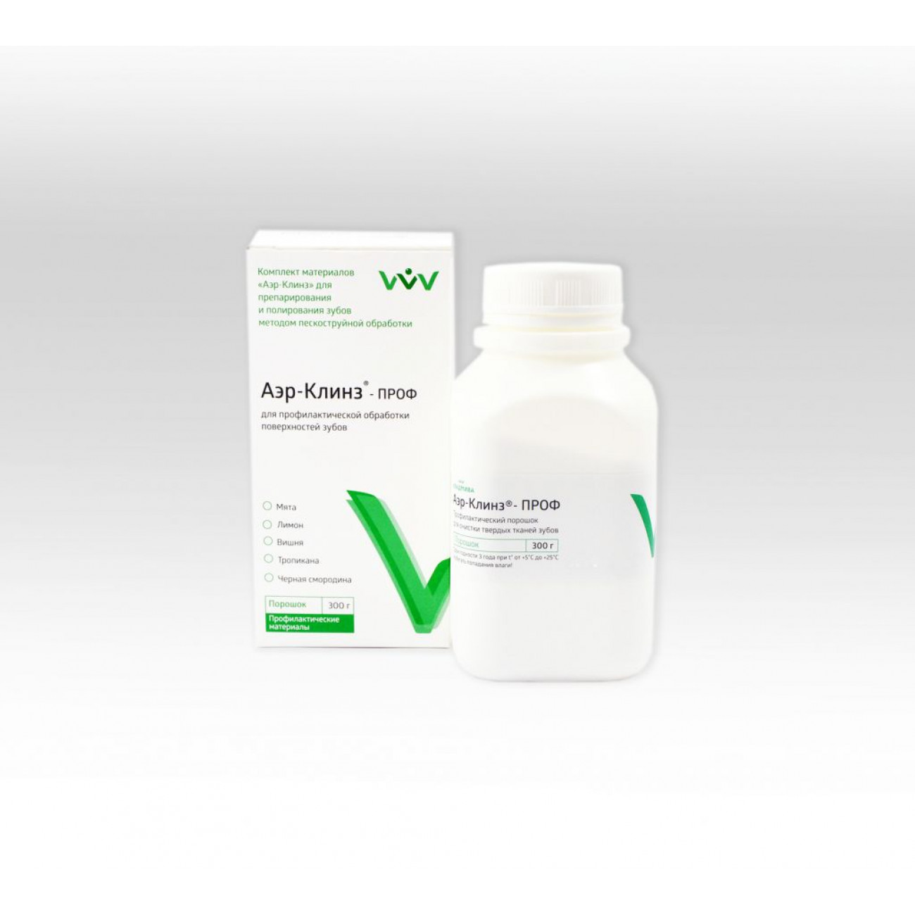 «Аэр-Клинз-ПРОФ» в качестве основного компонента содержит гидрокарбонат натрия с размером частиц, позволяющим провести очистку при щадящем воздействии на твердые ткани зуба. При случайном попадании очищающей струи на десну лидокаина гидрохлорид (0.5%), входящий в состав порошка, обеспечивает безболезненность мягких тканей. Порошок имеет приятный освежающий запах и вкус.